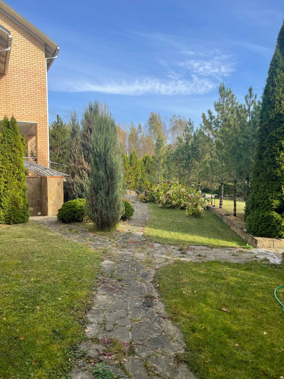 Придомовая ТЕРРИТОРИЯ расположена на участке — 18 сотках, на которой находятся деревья и кустарники, обустроен искусственный ВОДОЕМ глубиной 1,7 метра.