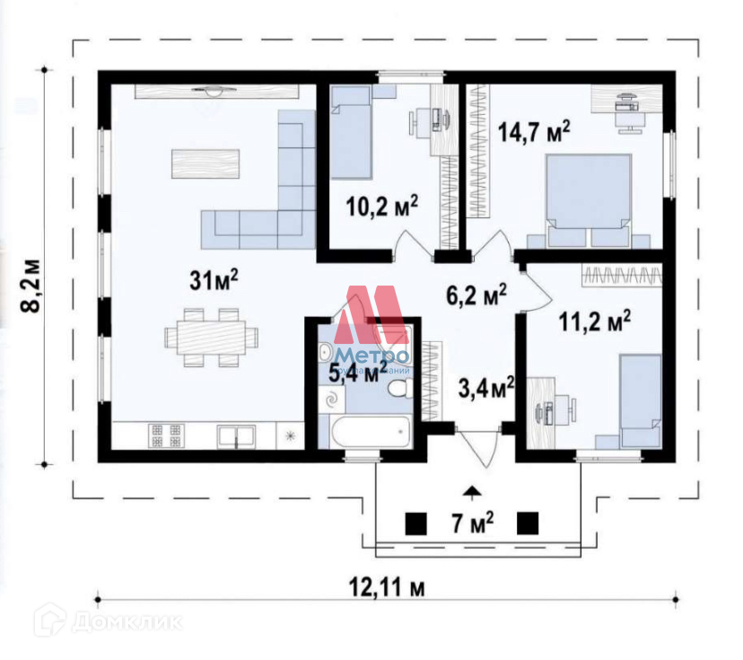 Общая площадь 86 м2