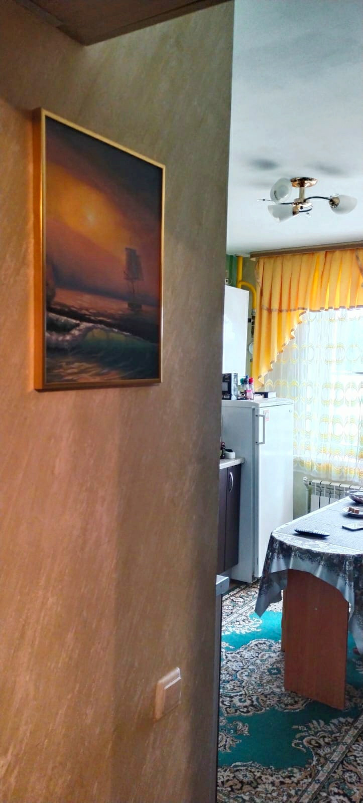 Вся квартира, включая санузел в современной декоративной штукатурке. На полу линолиум. Потолки в краске.