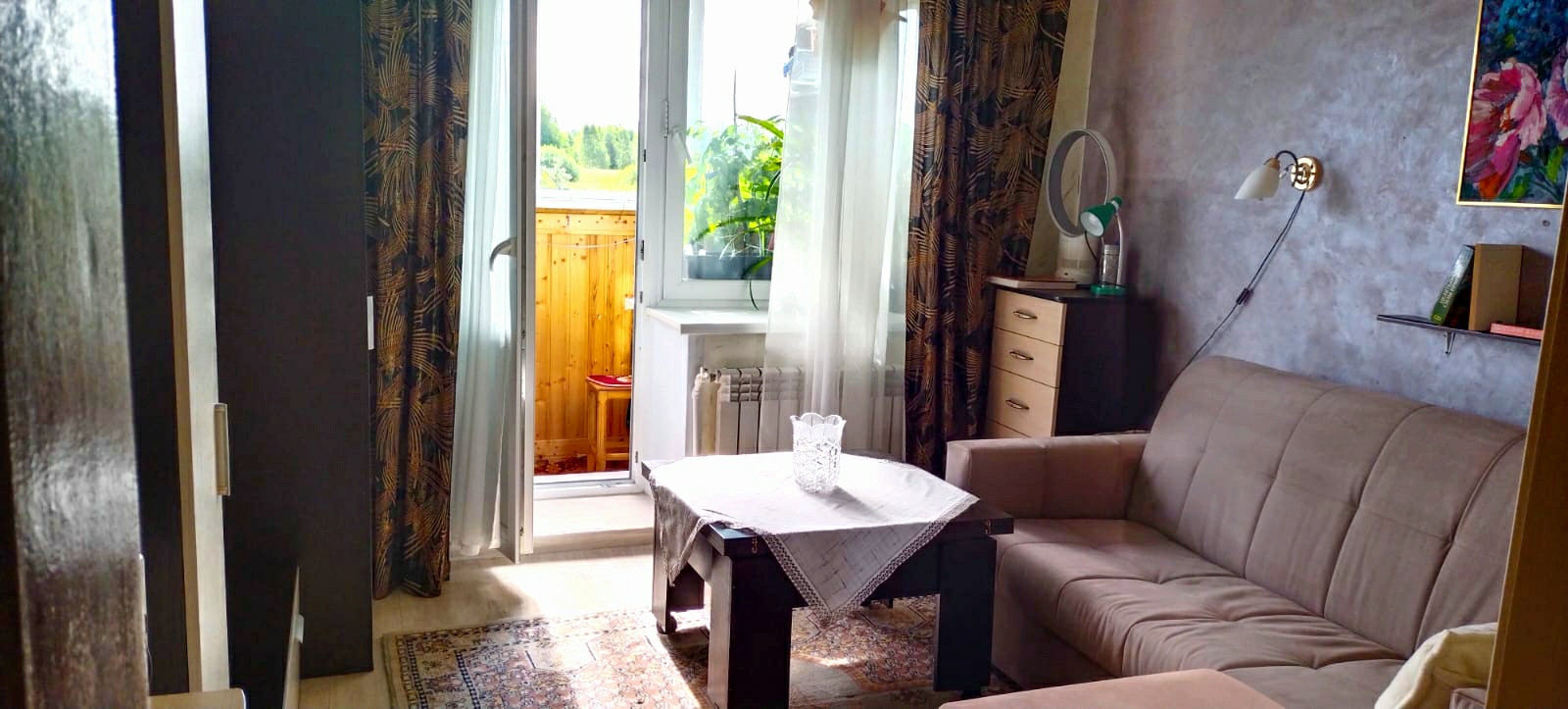 Комната 14 кв.м с балконом. Балкон 2.2 кв.м застеклён.