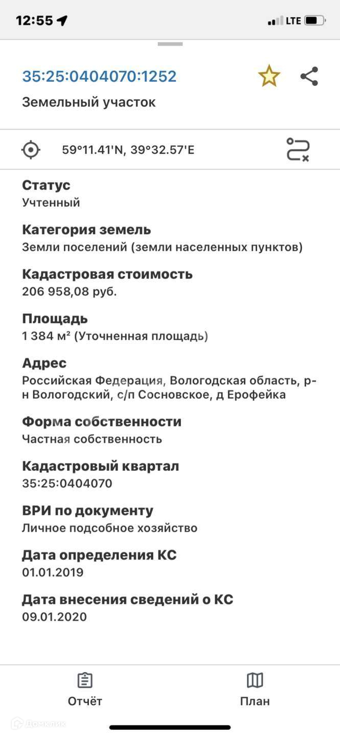 Участок прилегает к коттеджной застройке. Газ на границе участка. До Вологды 16 км. Деревня Ерофейка находится между Сосновкой и Новым Источником. Кадастровый номер: 35:25:0404070:1252