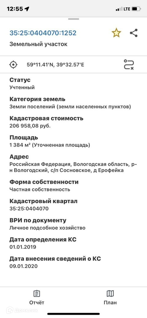 Кадастровый номер: 35:25:0404070:1252