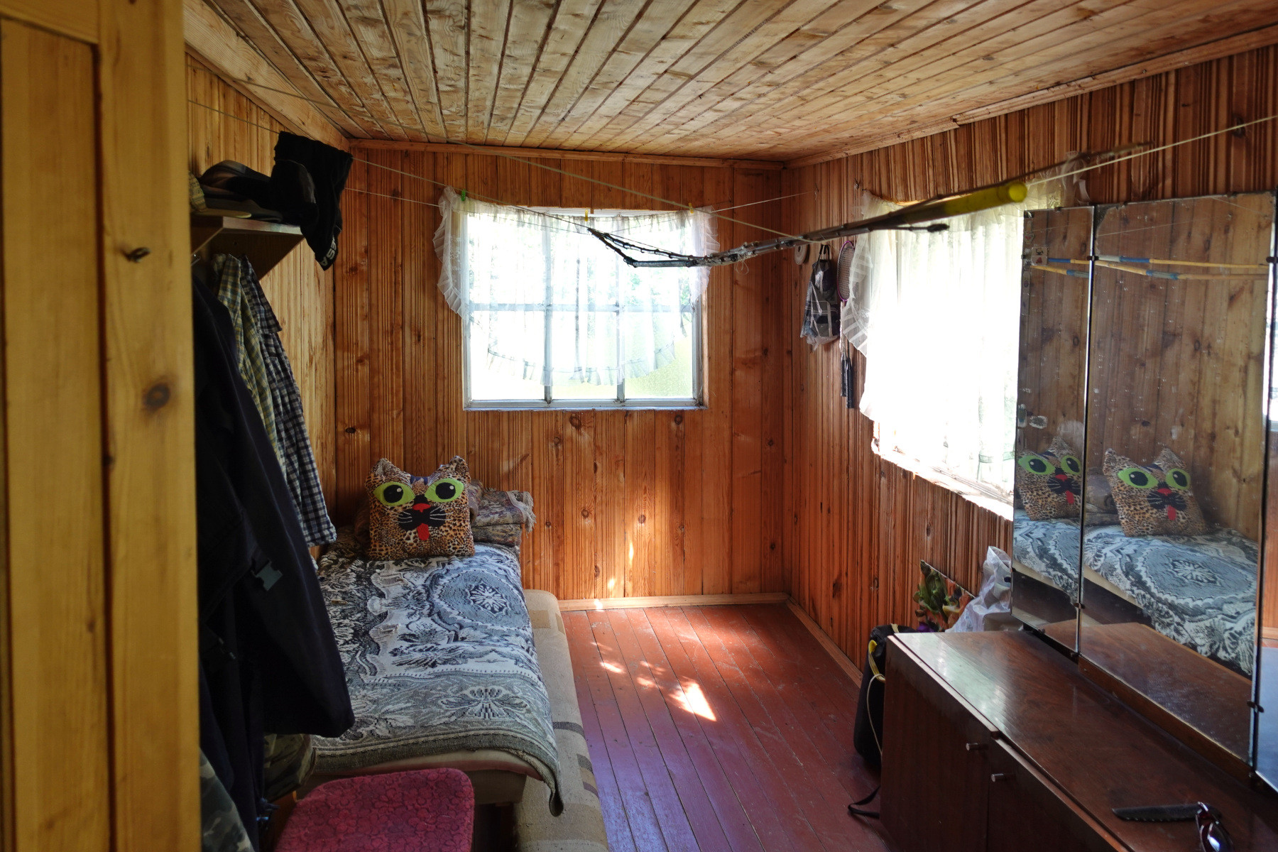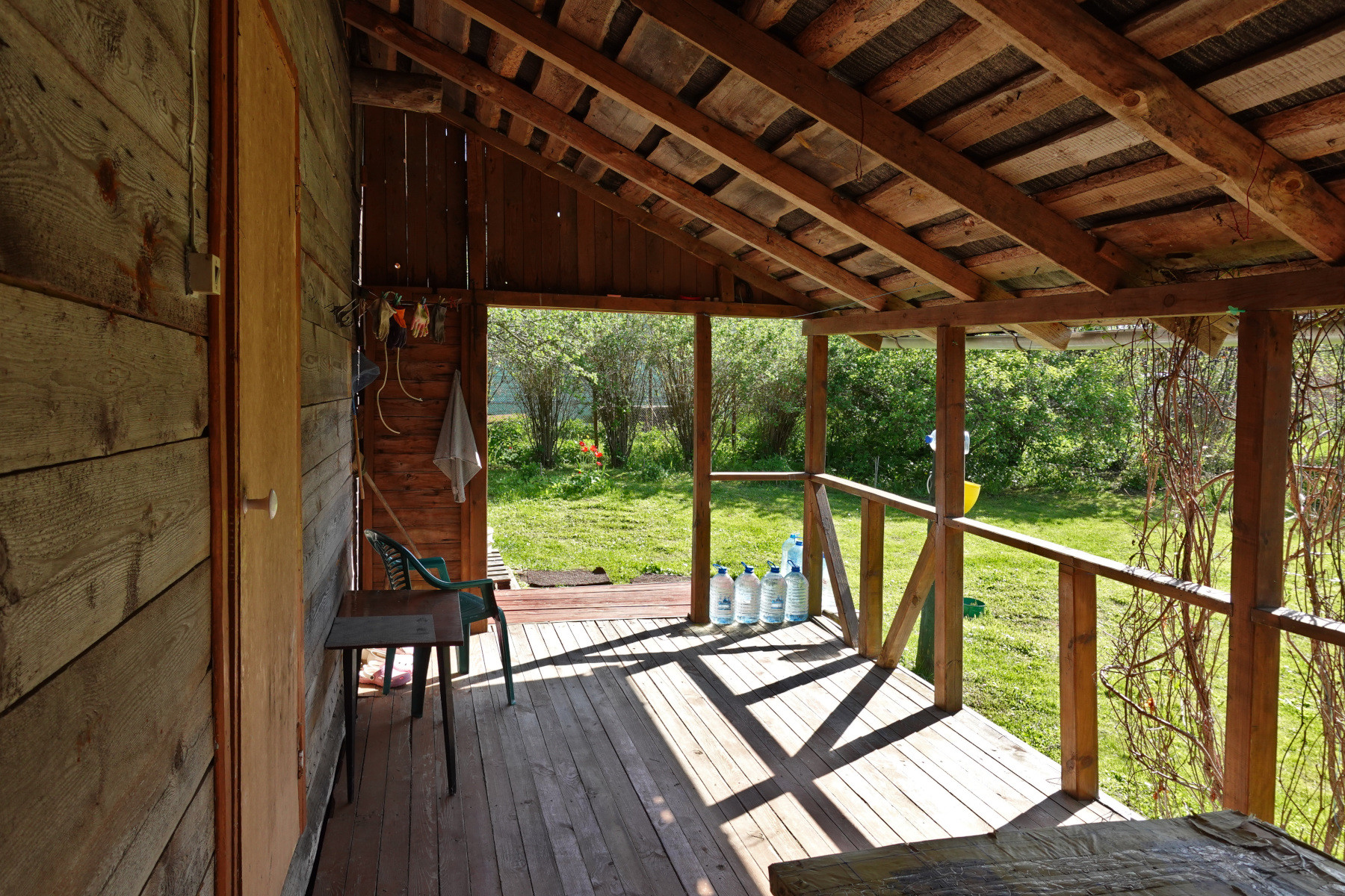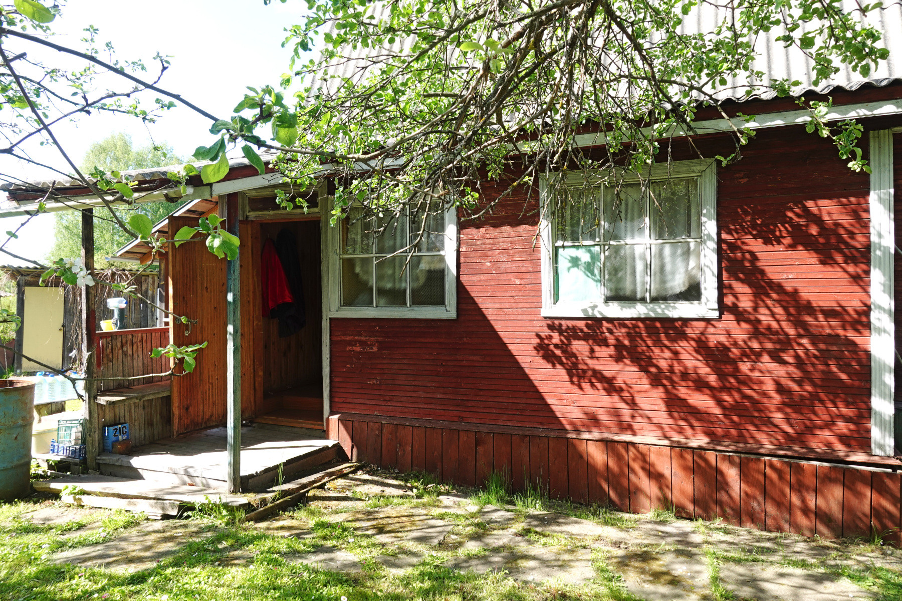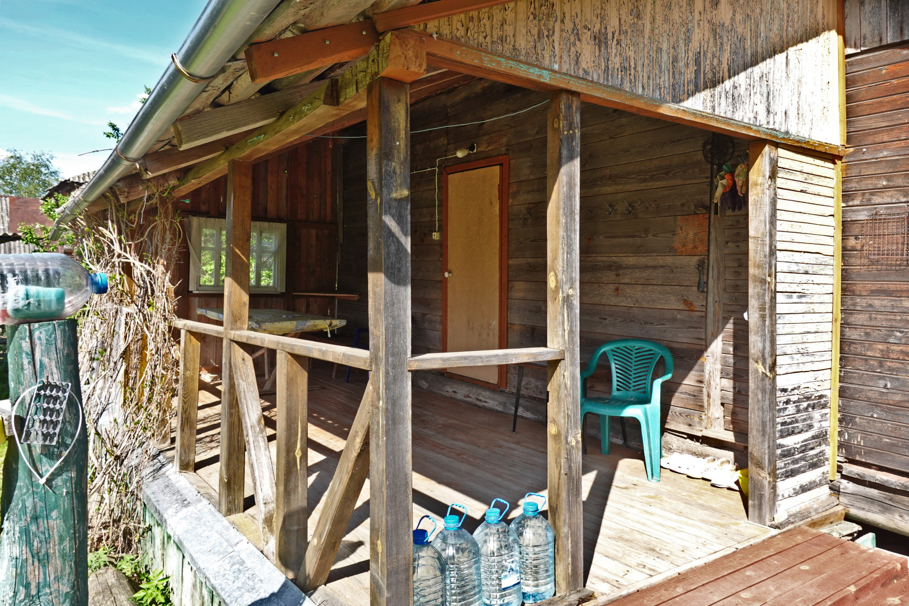 Общая площадь дома 48 кв.м, каркасно-щитовой, снаружи обложен кирпичом. В доме одна большая комната, кухня, прихожая, две веранды – открытая и закрытая. Есть возможность увеличения площади за счёт второго, мансардного этажа.