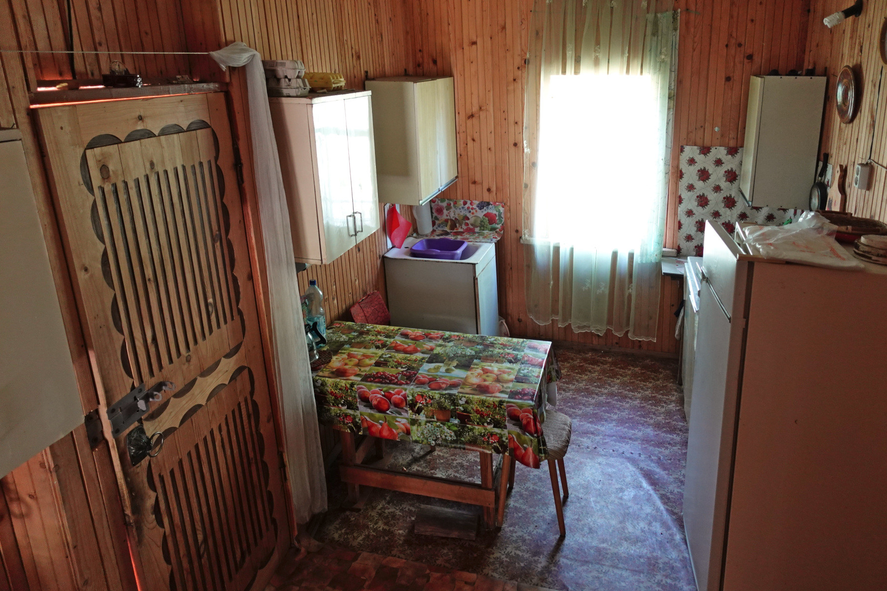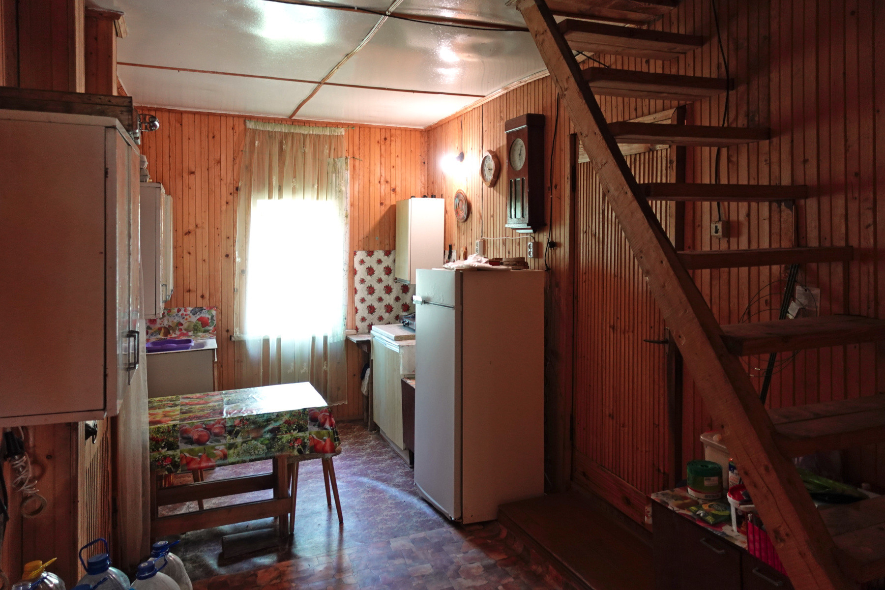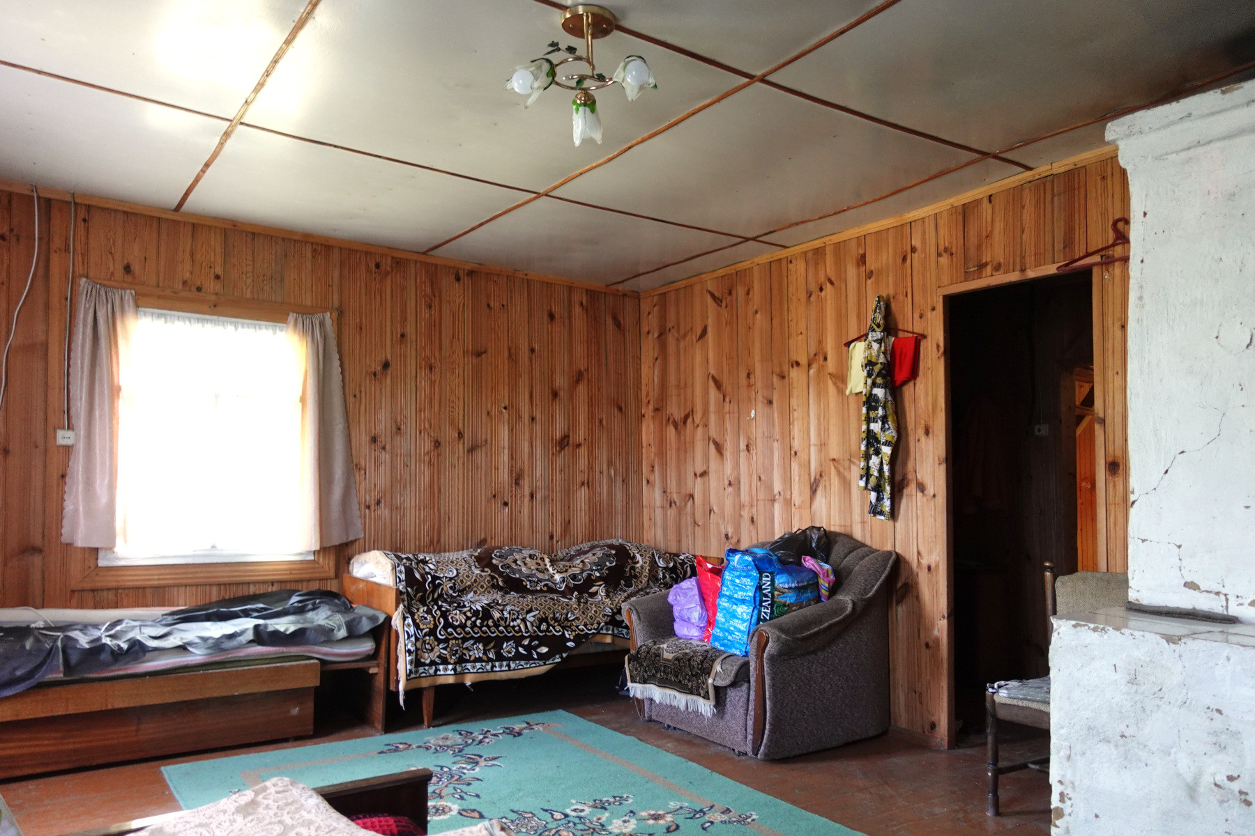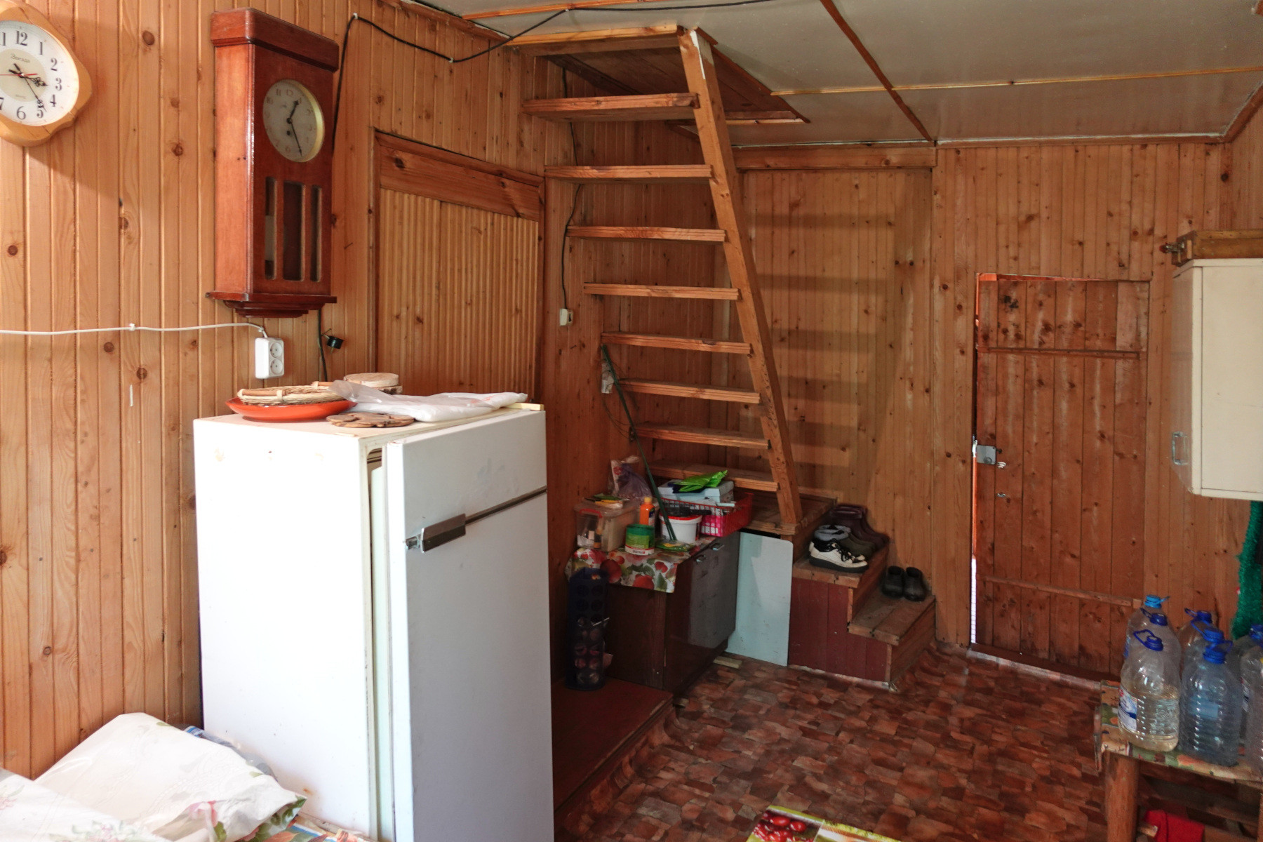 Общая площадь дома 48 кв.м, каркасно-щитовой, снаружи обложен кирпичом. В доме одна большая комната, кухня, прихожая, две веранды – открытая и закрытая. Есть возможность увеличения площади за счёт второго, мансардного этажа.