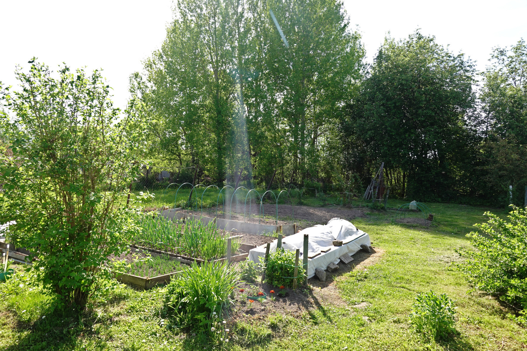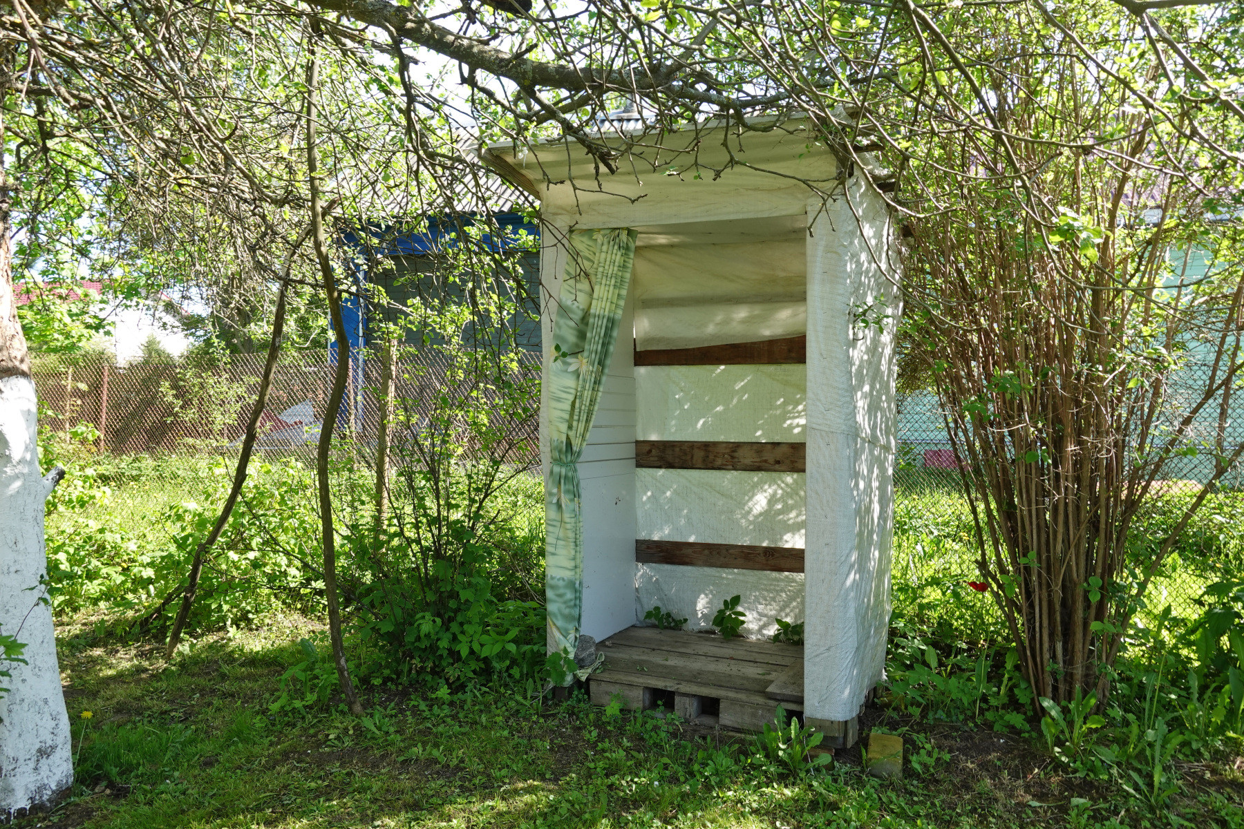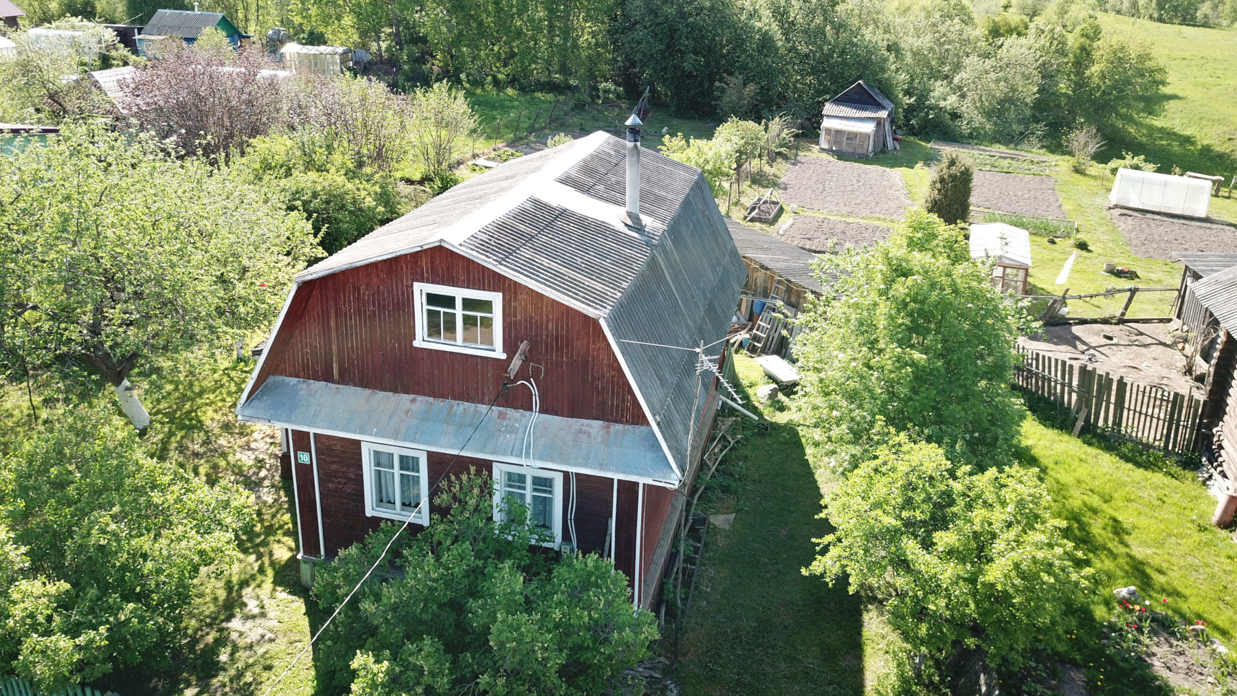 Земельный участок общей площадью 1000 кв.м (10 соток), полностью обработан, по периметру огорожен забором Посажены плодово-ягодные деревья и кустарники, есть несколько хозяйственных построек (летний душ, туалет, дровяник и т.п.). Так же к основному участку примыкает ещё один смежный участок площадью 500 кв.м (5 соток), огорожен забором.