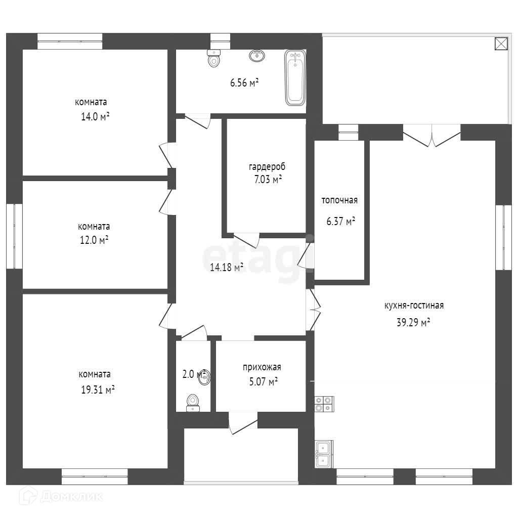 1-этажный дом, 140 м2, на продажу в деревне Есауловой, улица Гайдара, 13