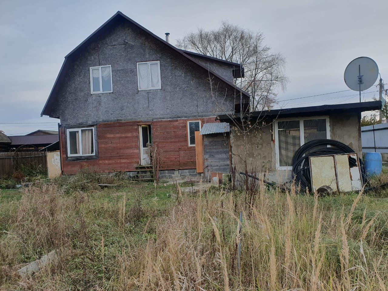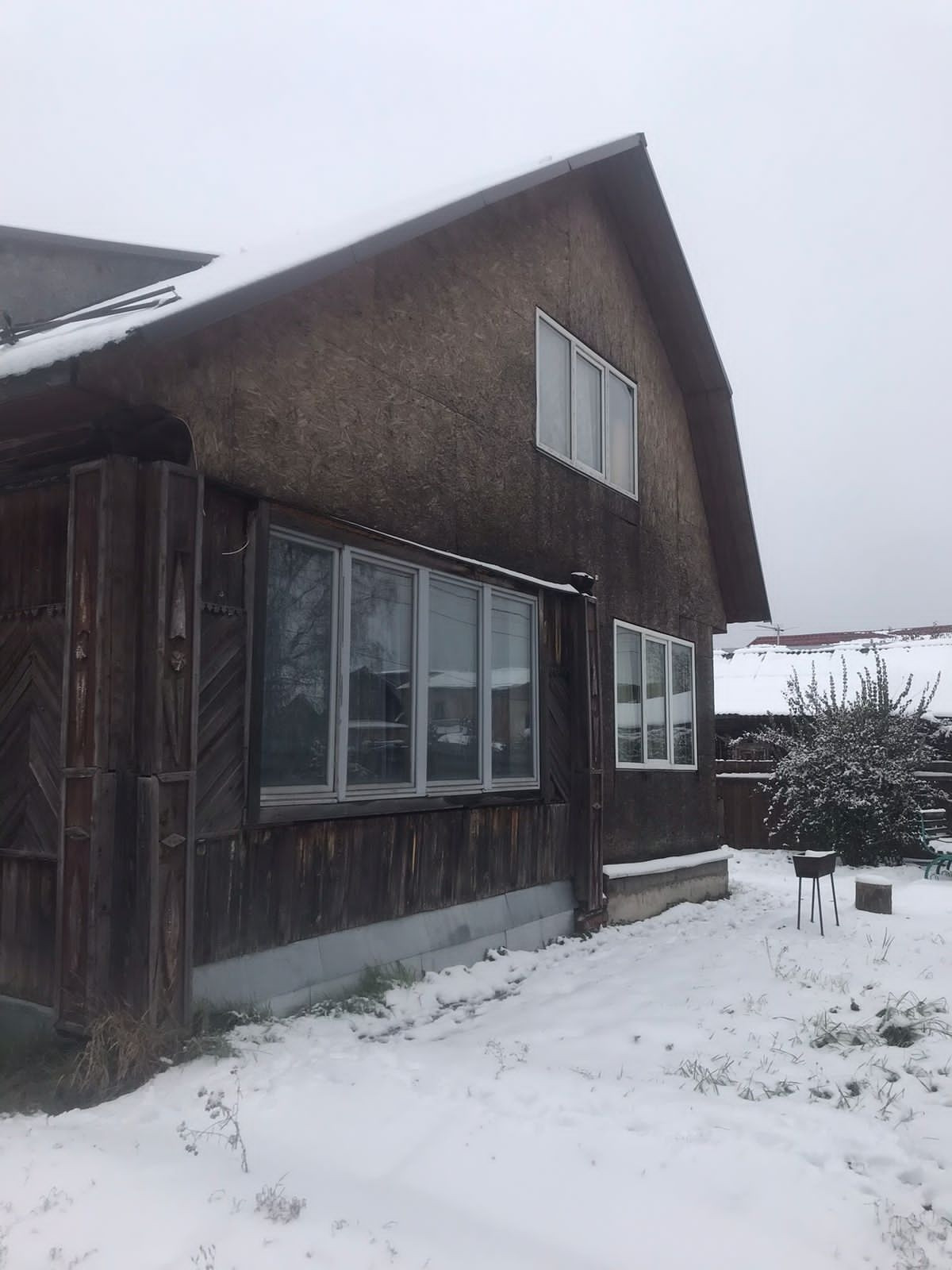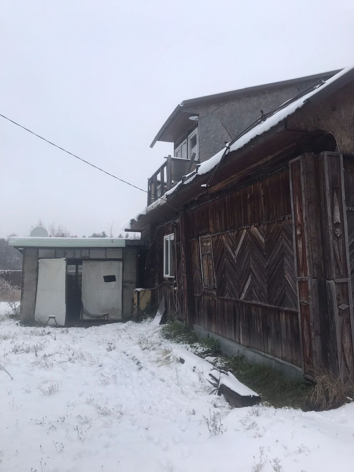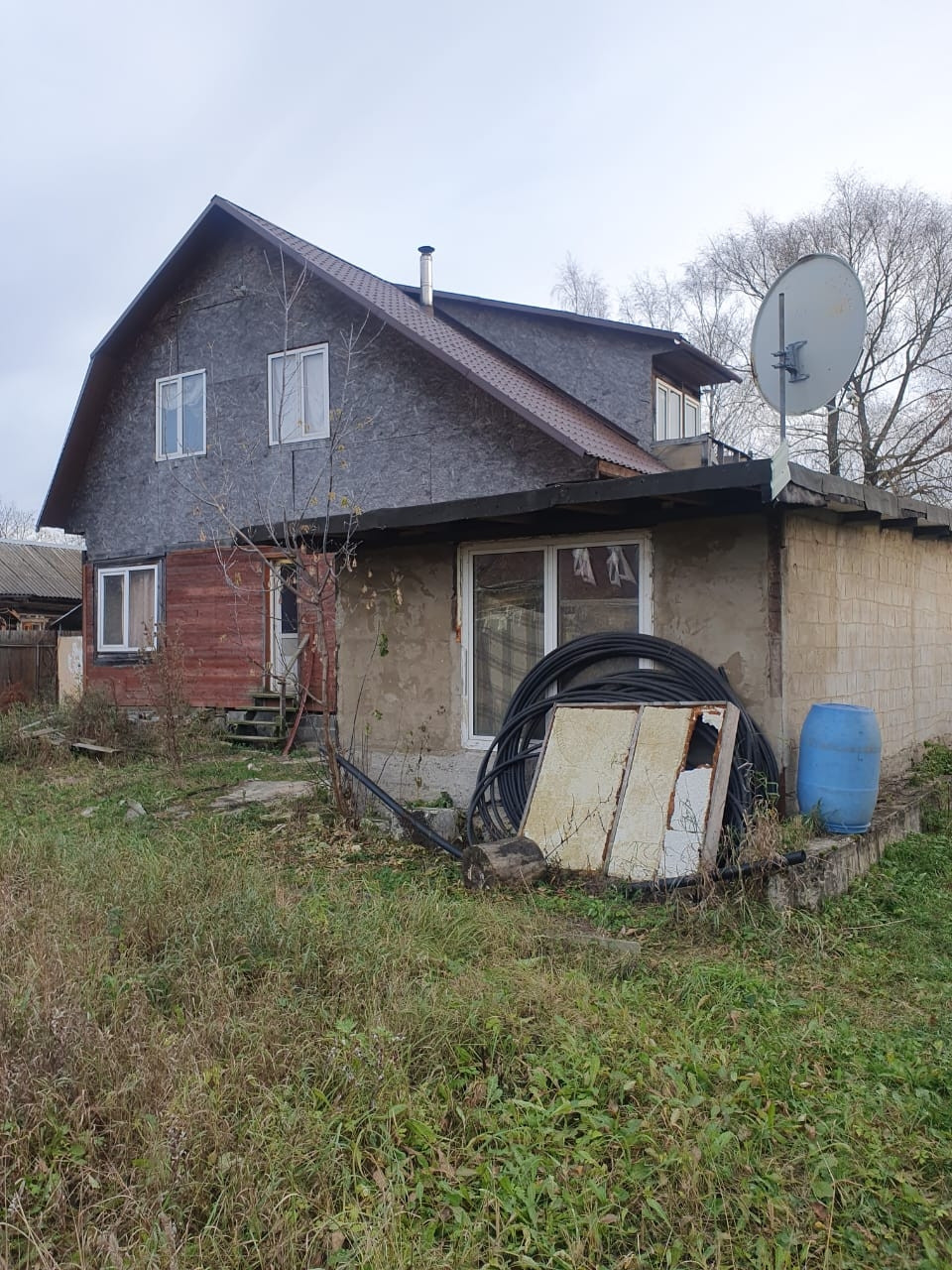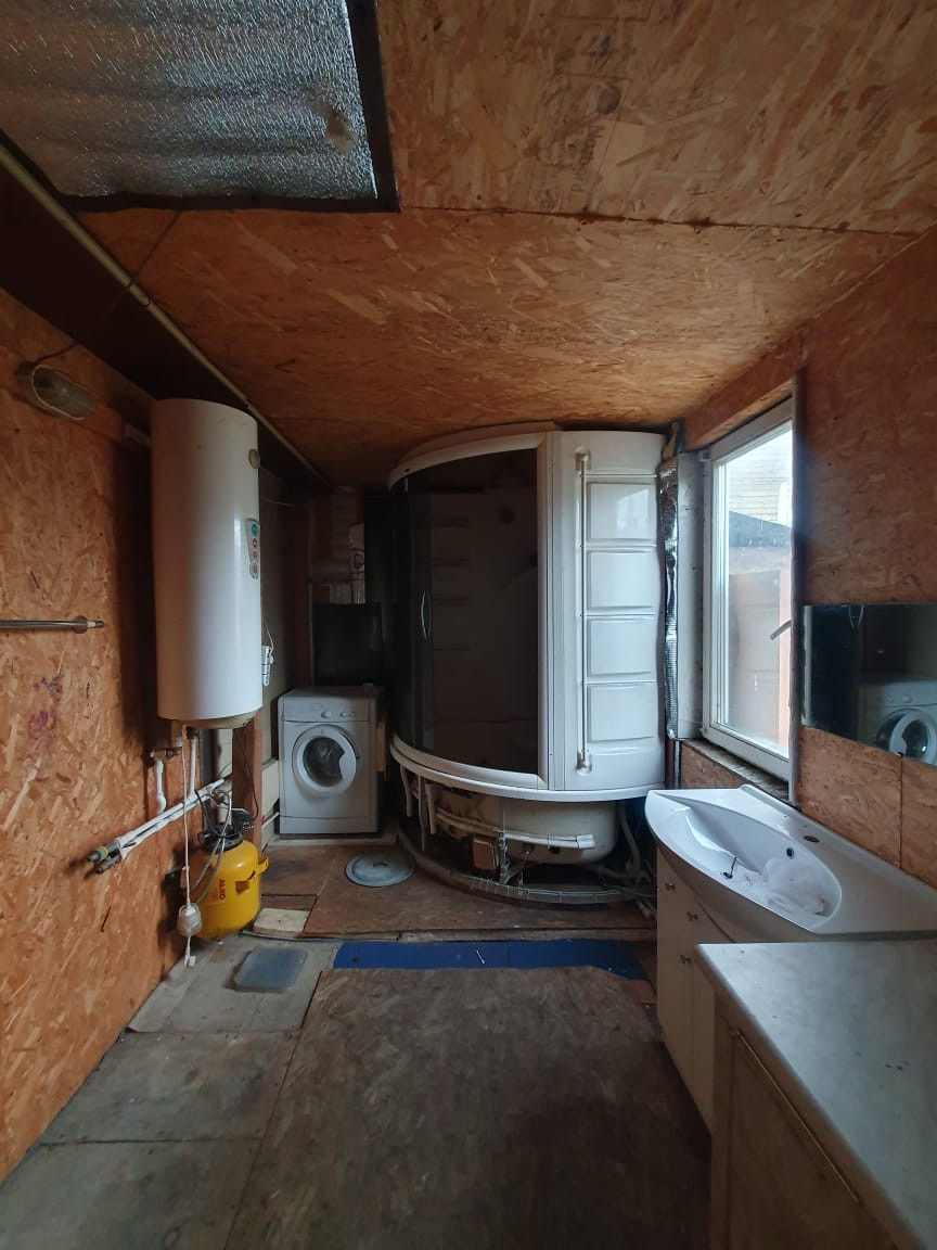 Дом с мансардой  на ленточном фундаменте,  отопление печь( магистральный газ по границе),в  доме три комнаты (требует ремонта), душевая кабина,  мансардный этаж без ремонта,  на участке  скважина  5 метров, рядом магазин, озеро,  до жд ст Есино 15 минут пешком.