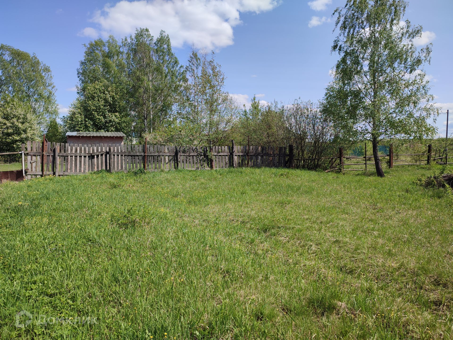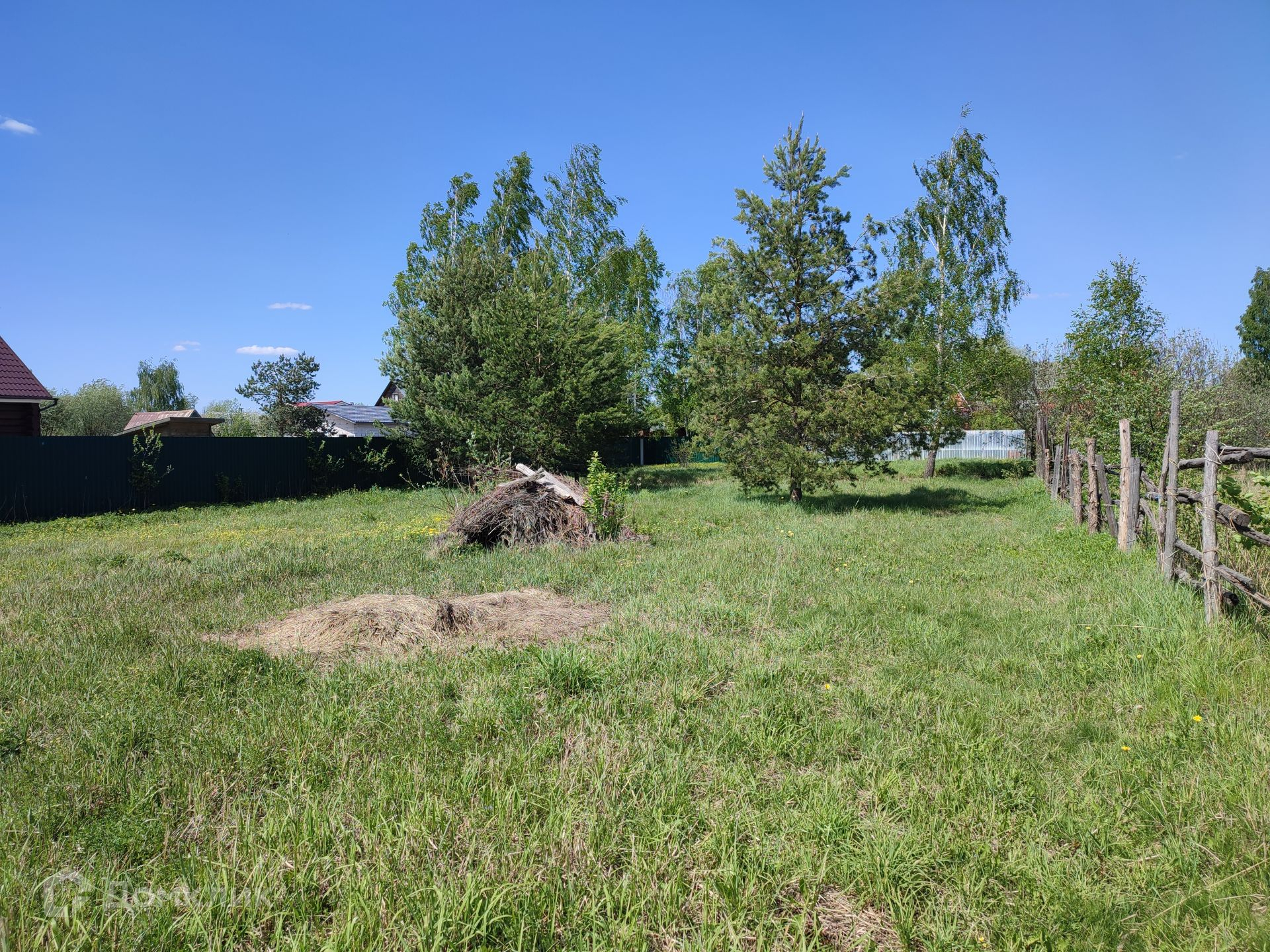 Участок прямоугольной формы, огорожен с двух сторон, с удобным подъездом.