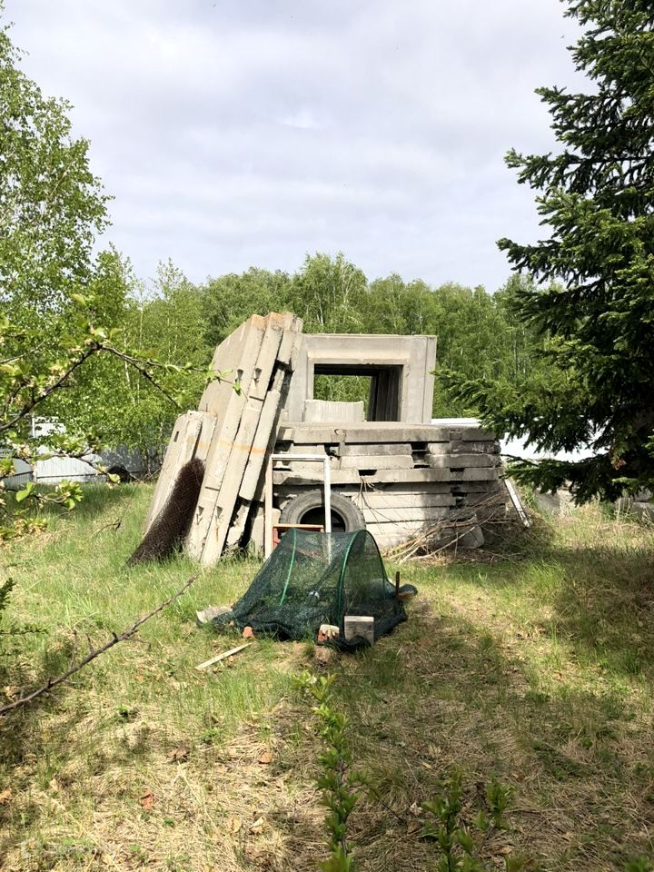 Газ заведён на участок. Дополнительно заложен фундамент для нового дома, есть материалы: строительные блоки, ж/б панели, участок полностью огорожен.