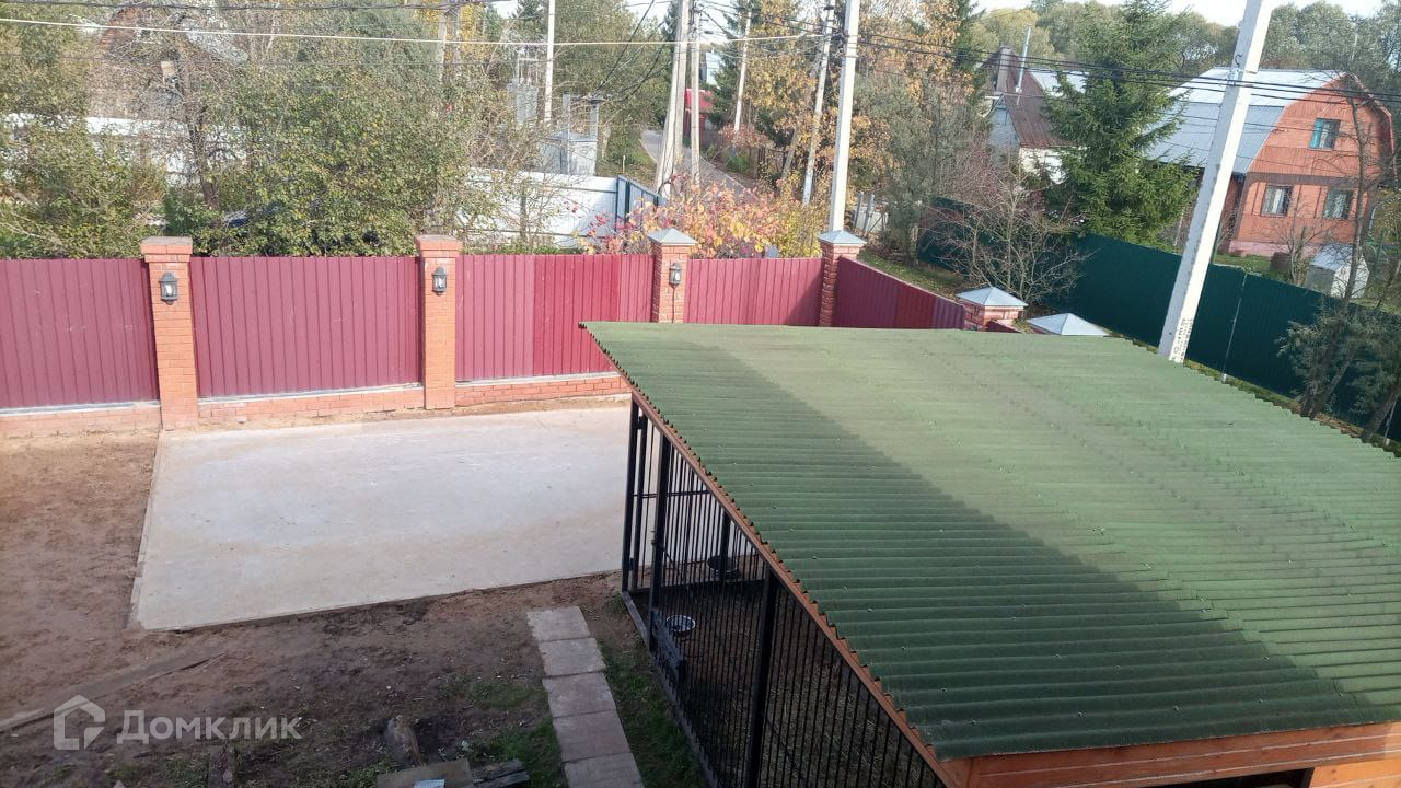 Участок огорожен кирпичным забором с метало профилем.