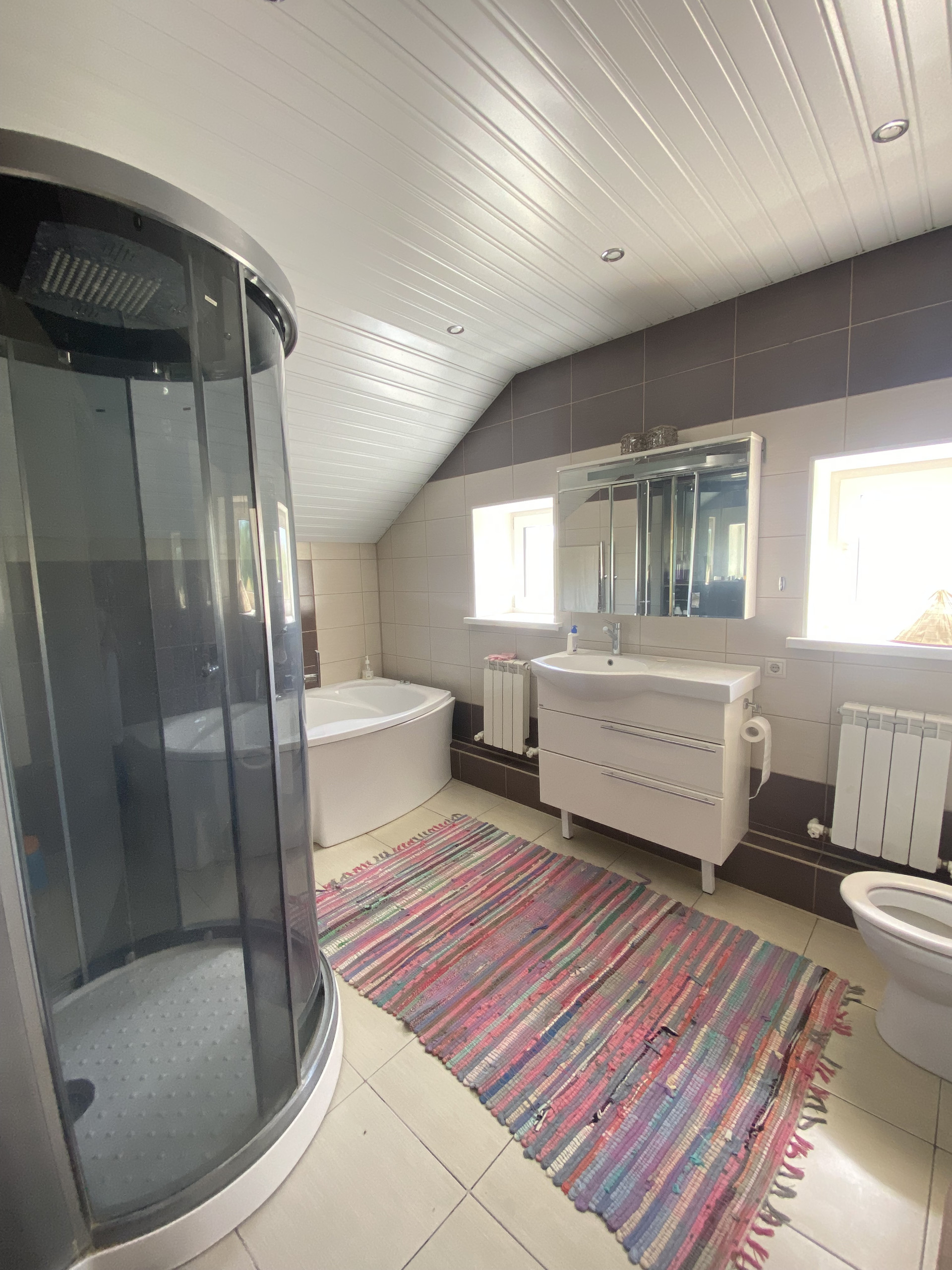 Дом капитальный, теплый, все коммуникации функционируют. в доме три спальни на 2-м этаже, на первом этаже расположена большая столовая-гостиная с зоной отдыха и приема пищи. На каждом этаже имеется санузел.