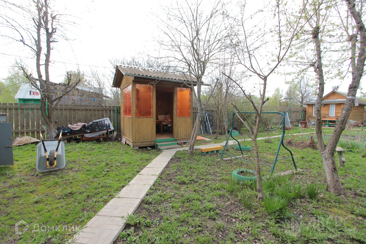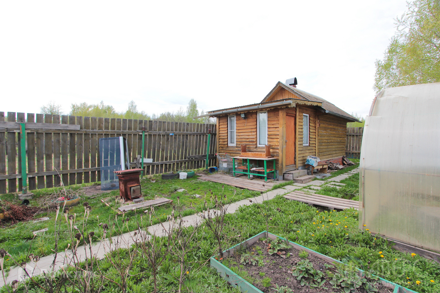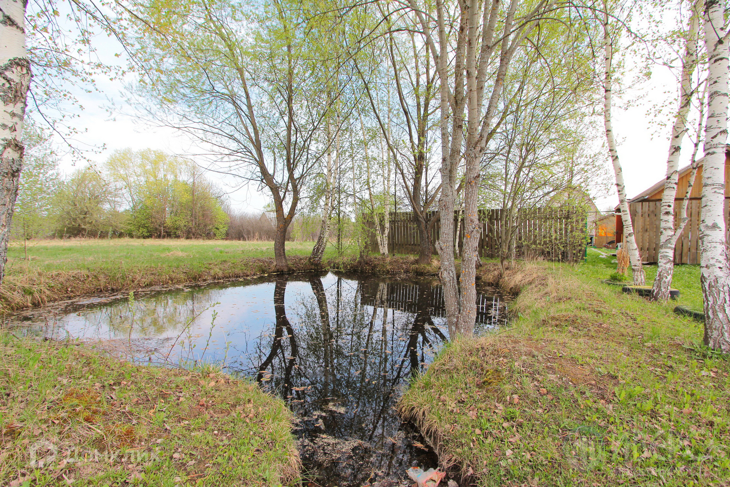 На участке располагается: теплица; летняя веранда, любимое место жителей частного дома; баня с парилкой; собственный пруд.