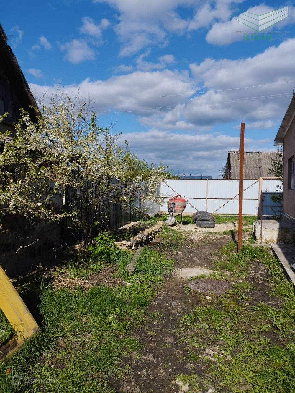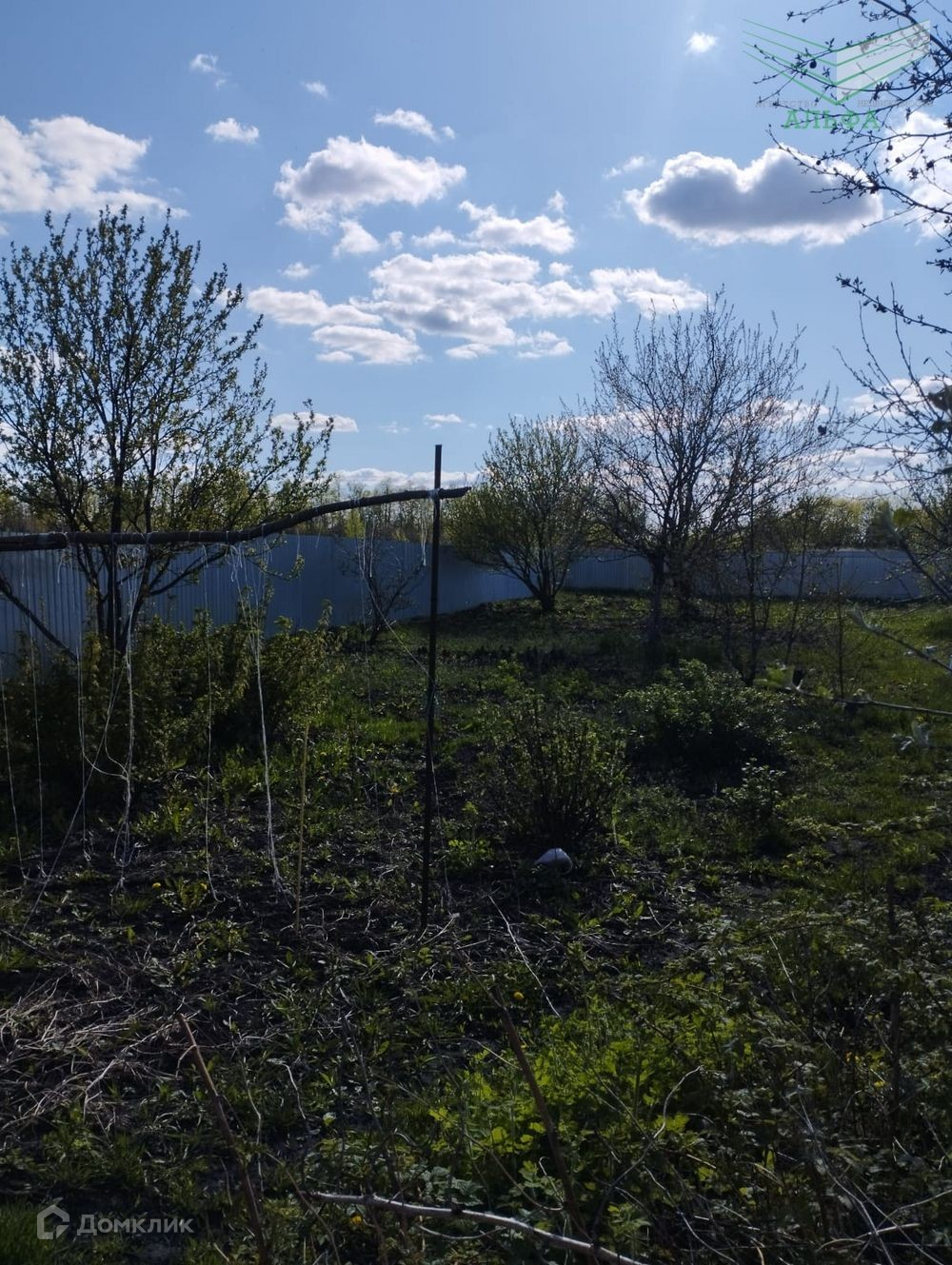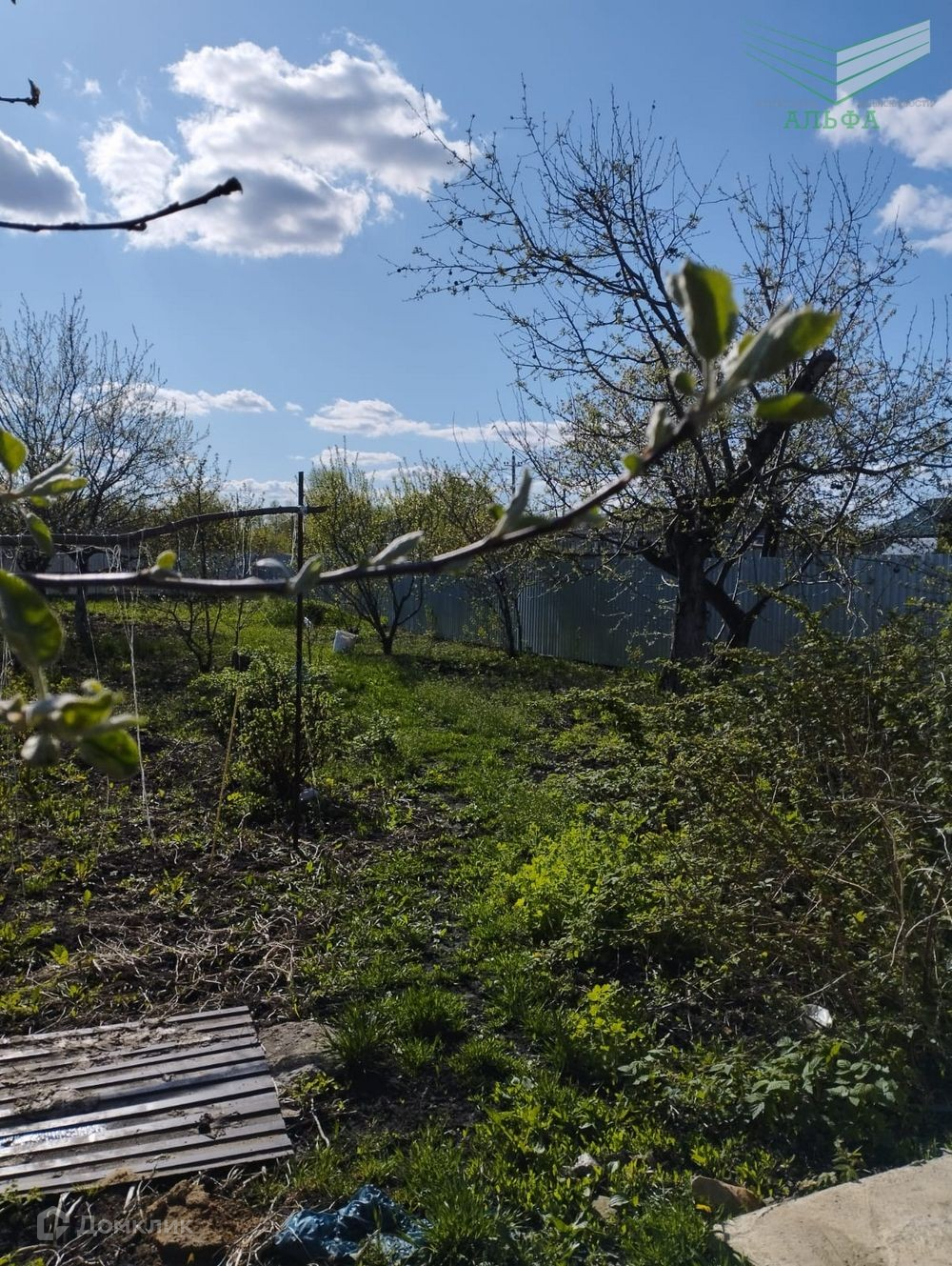 На участке хороший плодовый сад, огород. Забор по всему периметру - профлист.