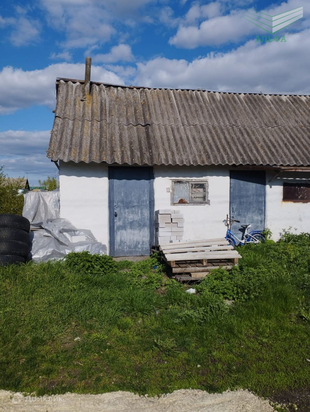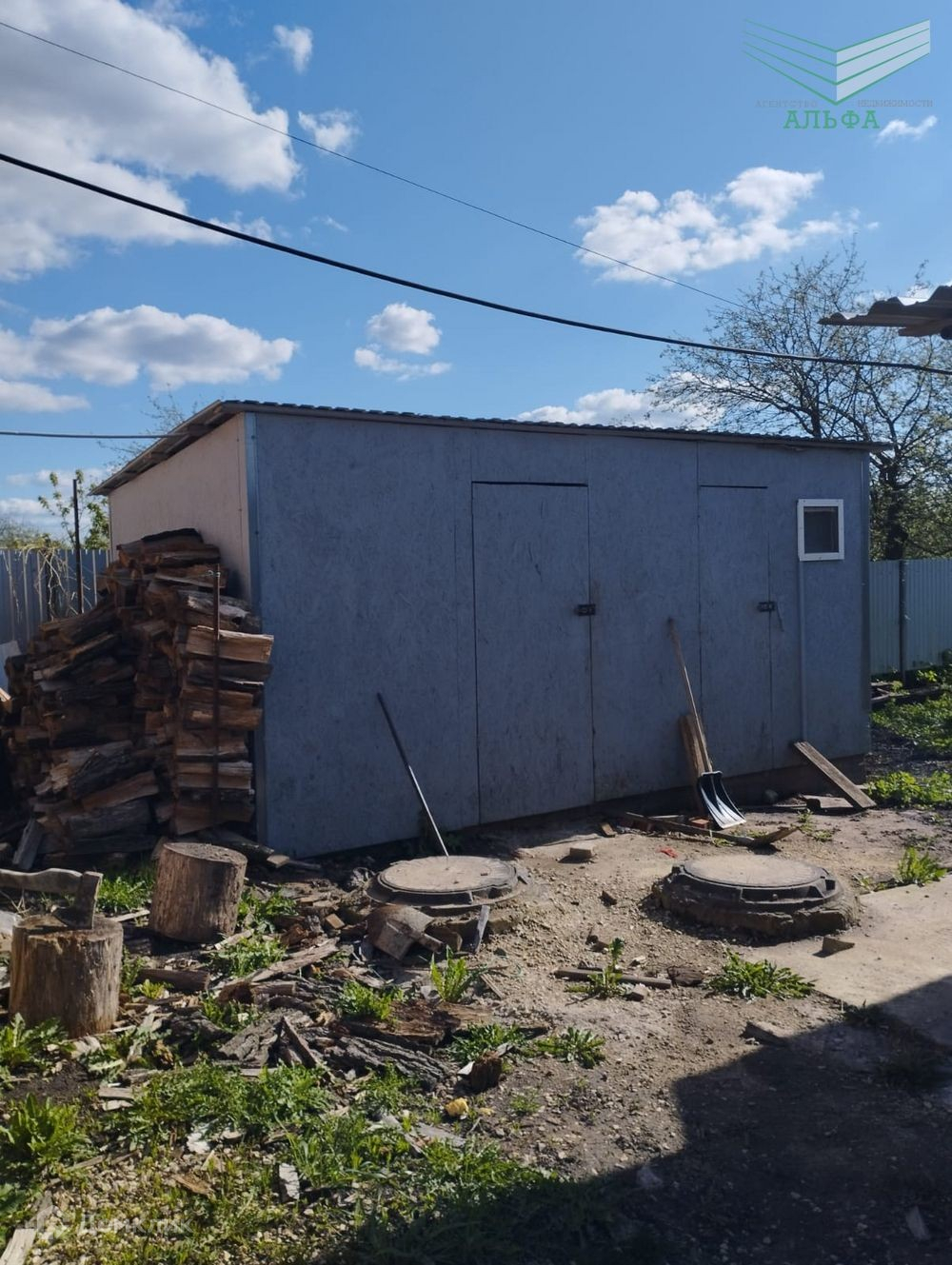 Из коммуникаций - электричество, вода, канализация - яма. Газ на границе участка. Есть дополнительный сарай за территорией.