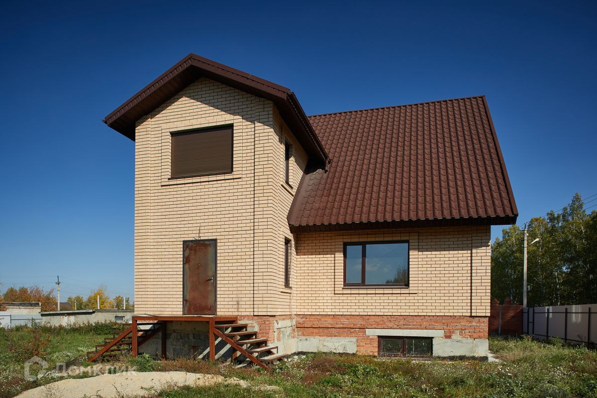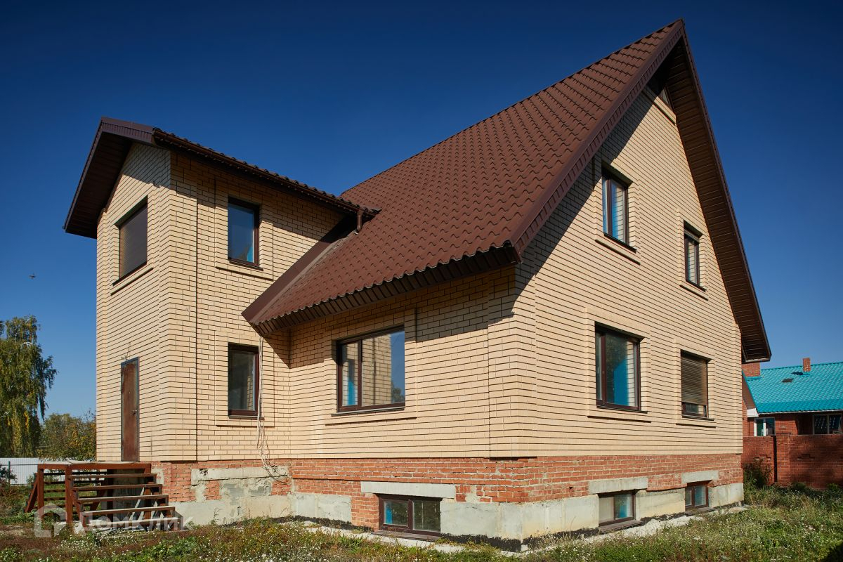 Дом построен из пеноблока. Этот материал строительства отличается повышенной способностью сохранять тепло. При этом в жаркую погоду он не нагревается, что позволяет круглогодично сохранять в доме комфортный микроклимат. Для наружной отделки использован облицовочный кирпич, что придаёт дому некоторую статусность.