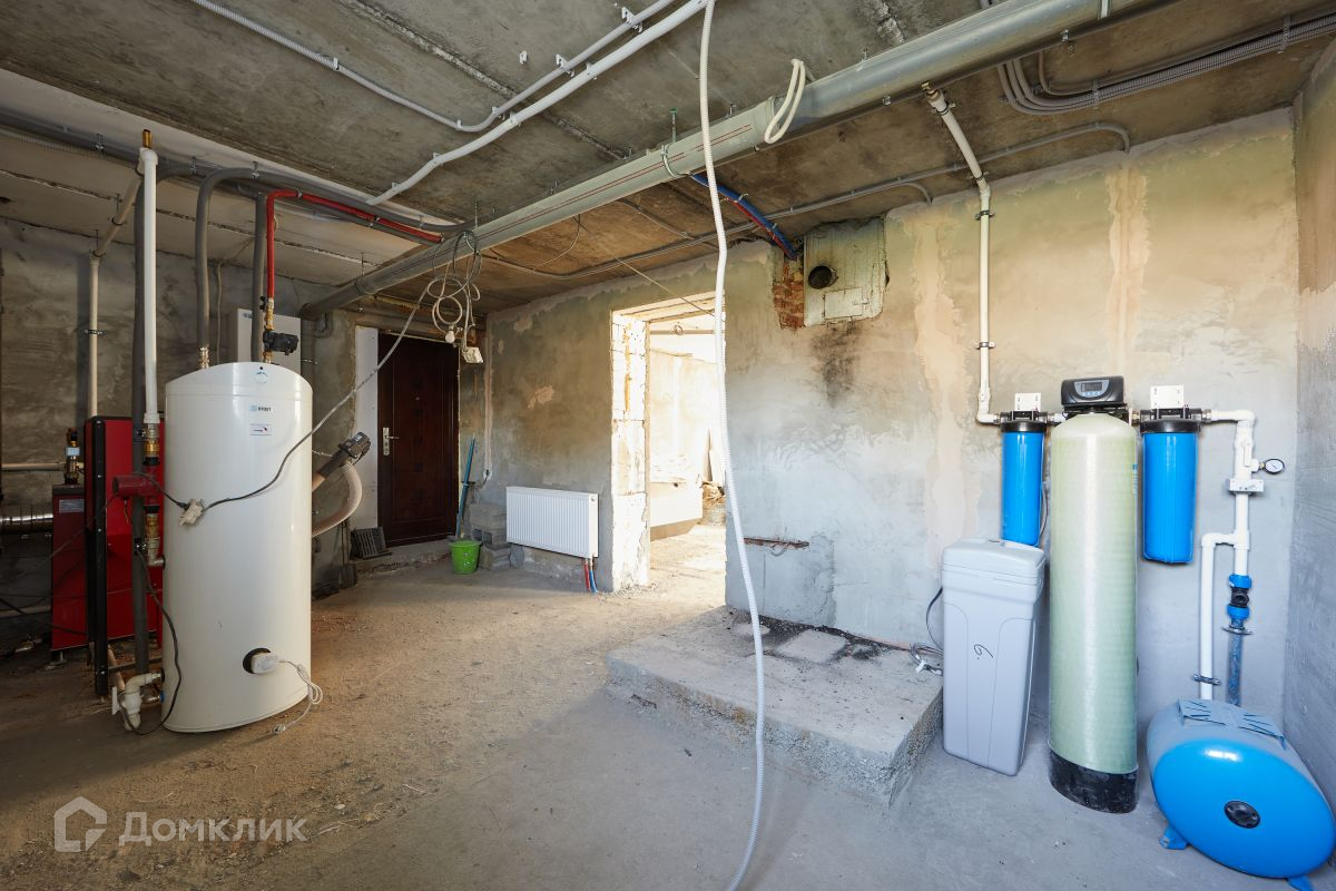 В доме полноценных 3 этажа: цокольный этаж представляет собой хоз.блок с установленным оборудованием для водо- и теплоснабжения (19,7 кв м). Всё необходимое для полноценного обеспечения дома ресурсами эргономично помещается здесь, при этом остаётся пространство для прохода и удобного обслуживания приборов, при необходимости. Также в цокольном этаже есть помещение площадью 3,97 кв м, в котором можно реализовать идею прачечной, установив стиральную и сушильную машины. Ко всему прочему, в цокольном этаже есть большая комната правильной прямоугольной формы площадью 54,4 кв м. Собственный спортивный зал? Может быть, зона бильярда? Сауна? Или большой рабочий кабинет с библиотекой? Решать только Вам!