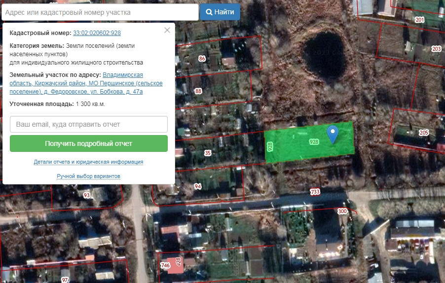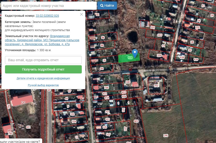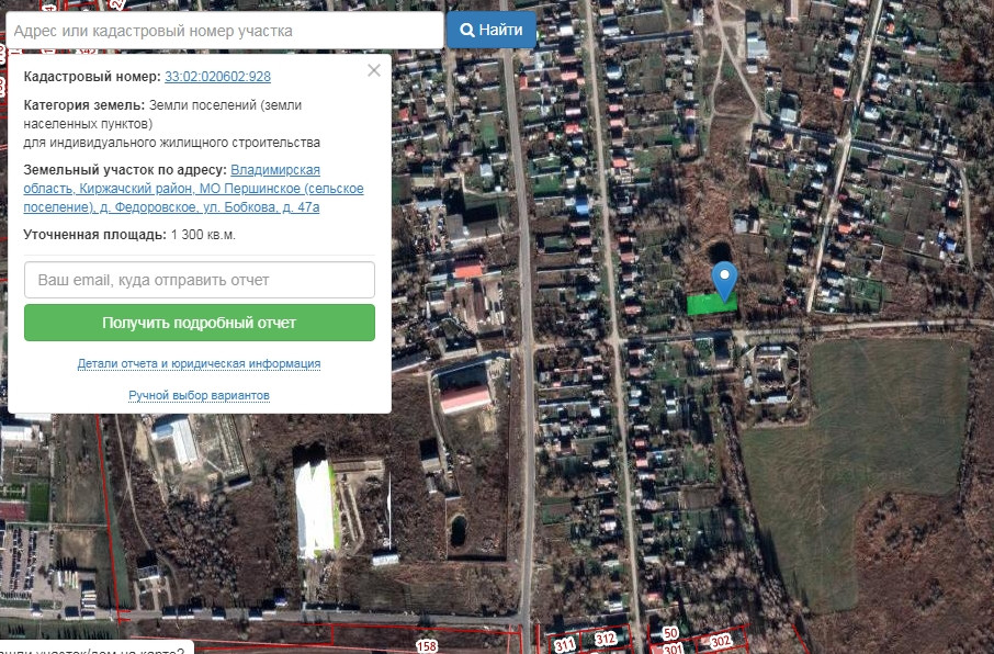 Земельный участок по адресу: Владимирская область, Киржачский район, МО Першинское (сельское поселение), д. Федоровское, ул. Бобкова, д. 47а