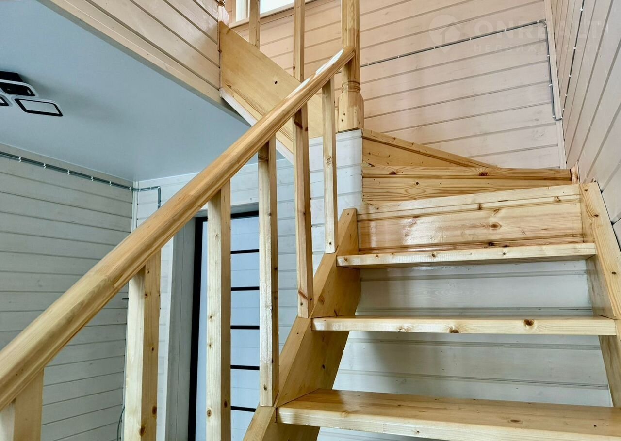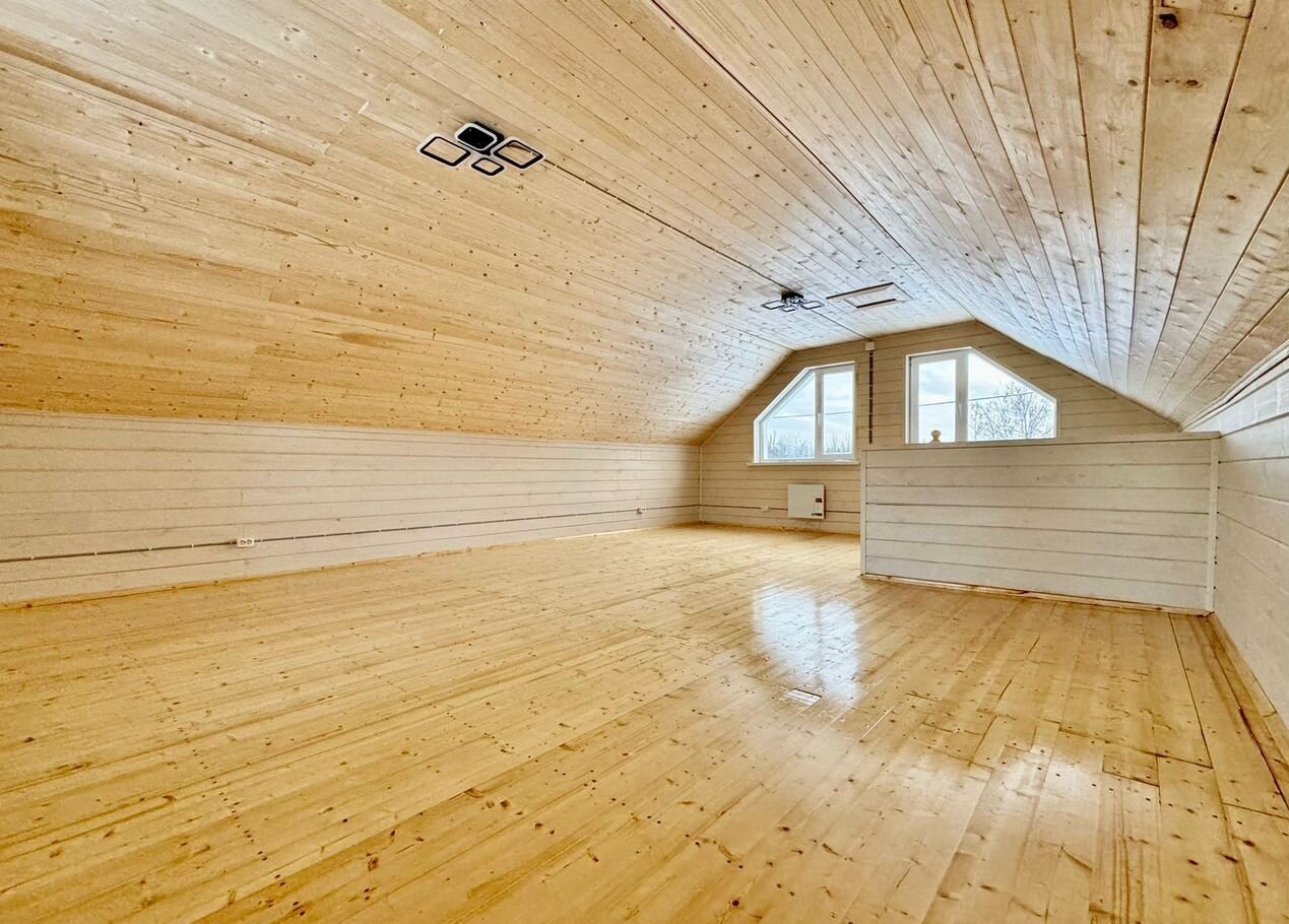 Внутренняя отделка второго этажа: стены имитация бруса А сорта, с выкрашиванием антисептиком (слоновая кость) потолок - вагонка.