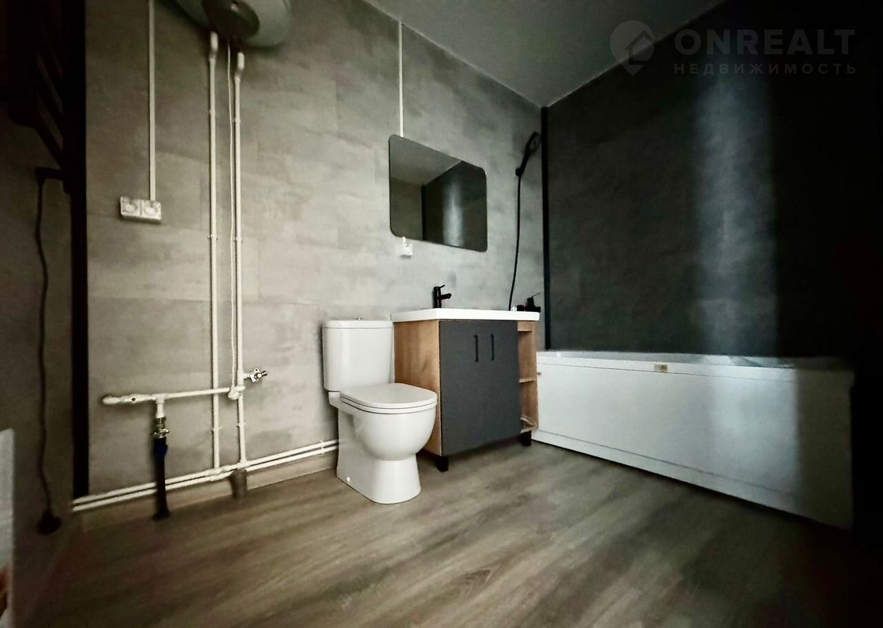 Канализация заведена в дом. Санузел оборудован: ванная, раковина с тумбой, унитаз, смесители, зеркало с подсветкой, полотенцесушитель, сделана разводка под стиральную машину, установлен кран на улицу незамерзающий. Стены - кварц винил.