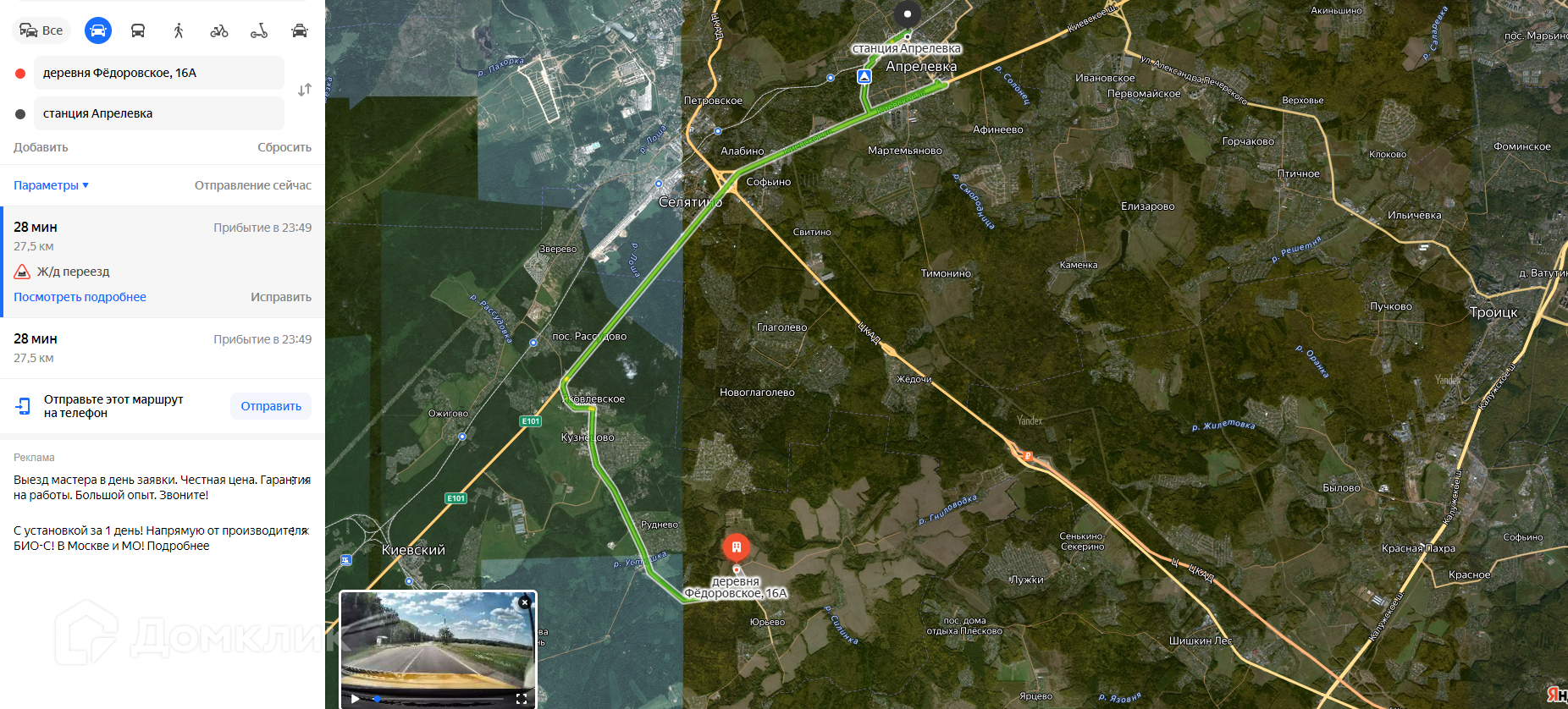 Дорога к участку асфальтирована.