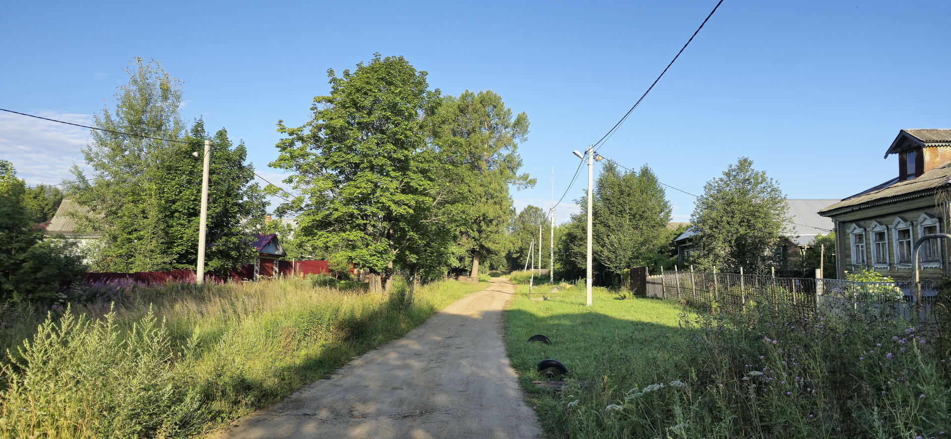 - на участке растут сосны, ели и березы, потрясающий вид, запах и выход в лес и к речке, улица не проходная, а это значит тишина и спокойствие (идеальное место для глэмпинга);