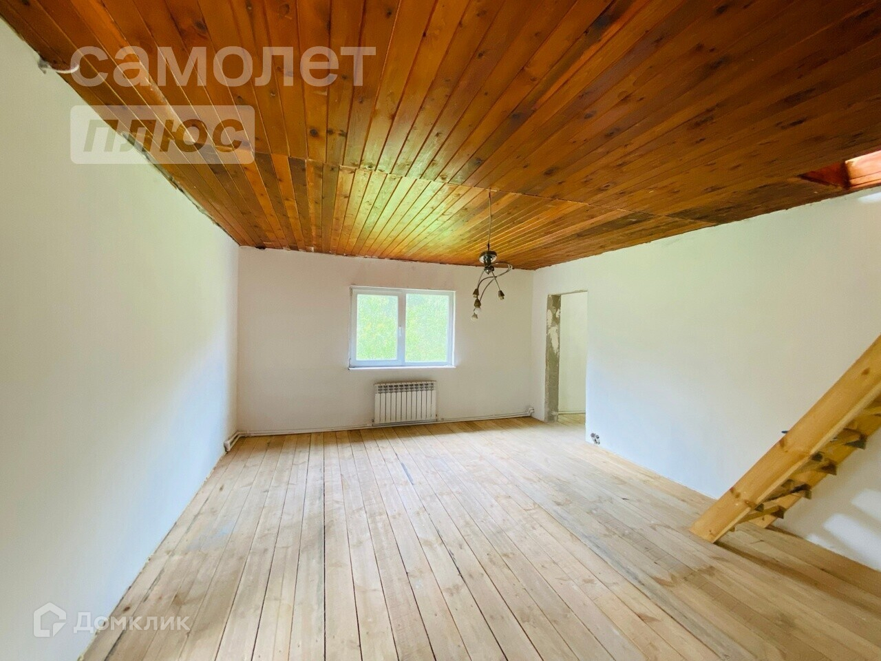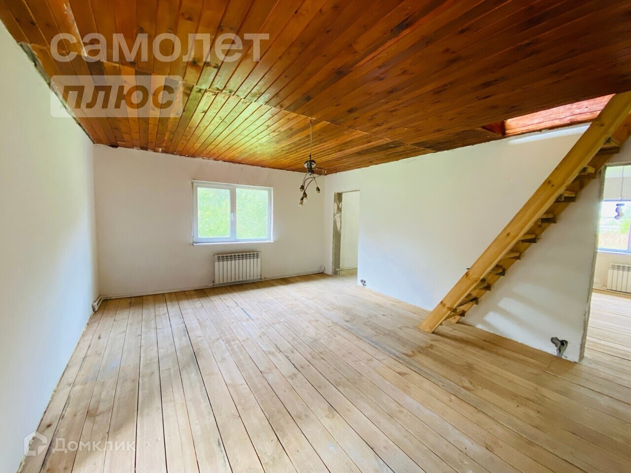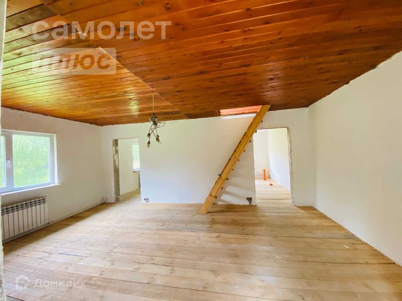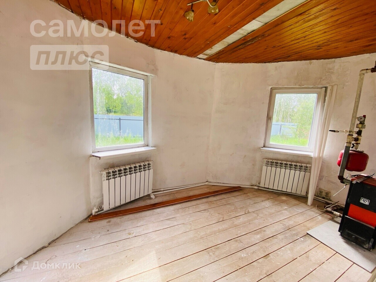 В доме на первом этаже пластиковые окна. На втором деревянные.