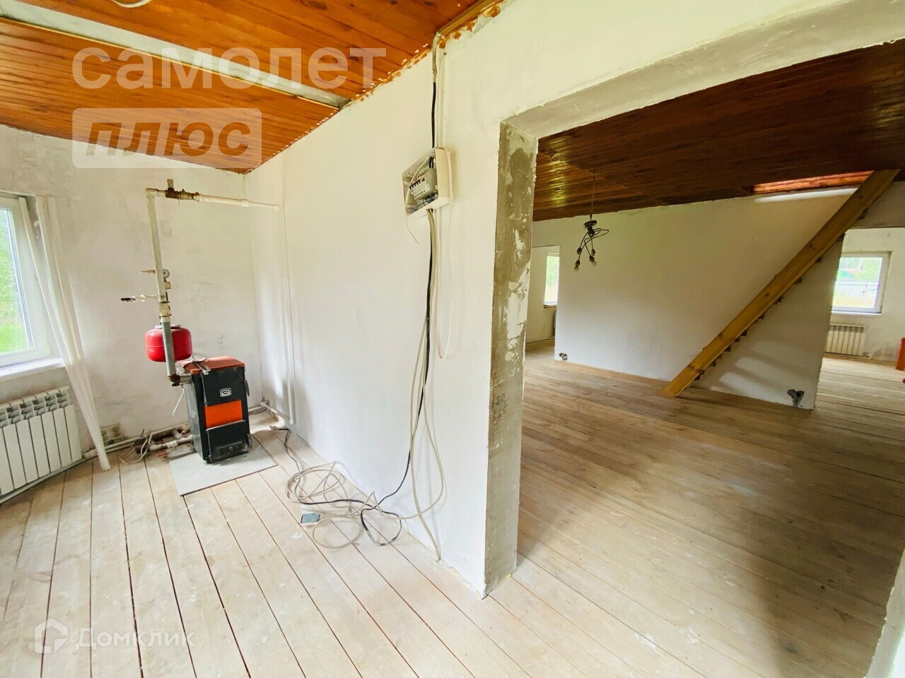 Отопление – батареи разведены от твердотопливного котла по 1ому этажу.