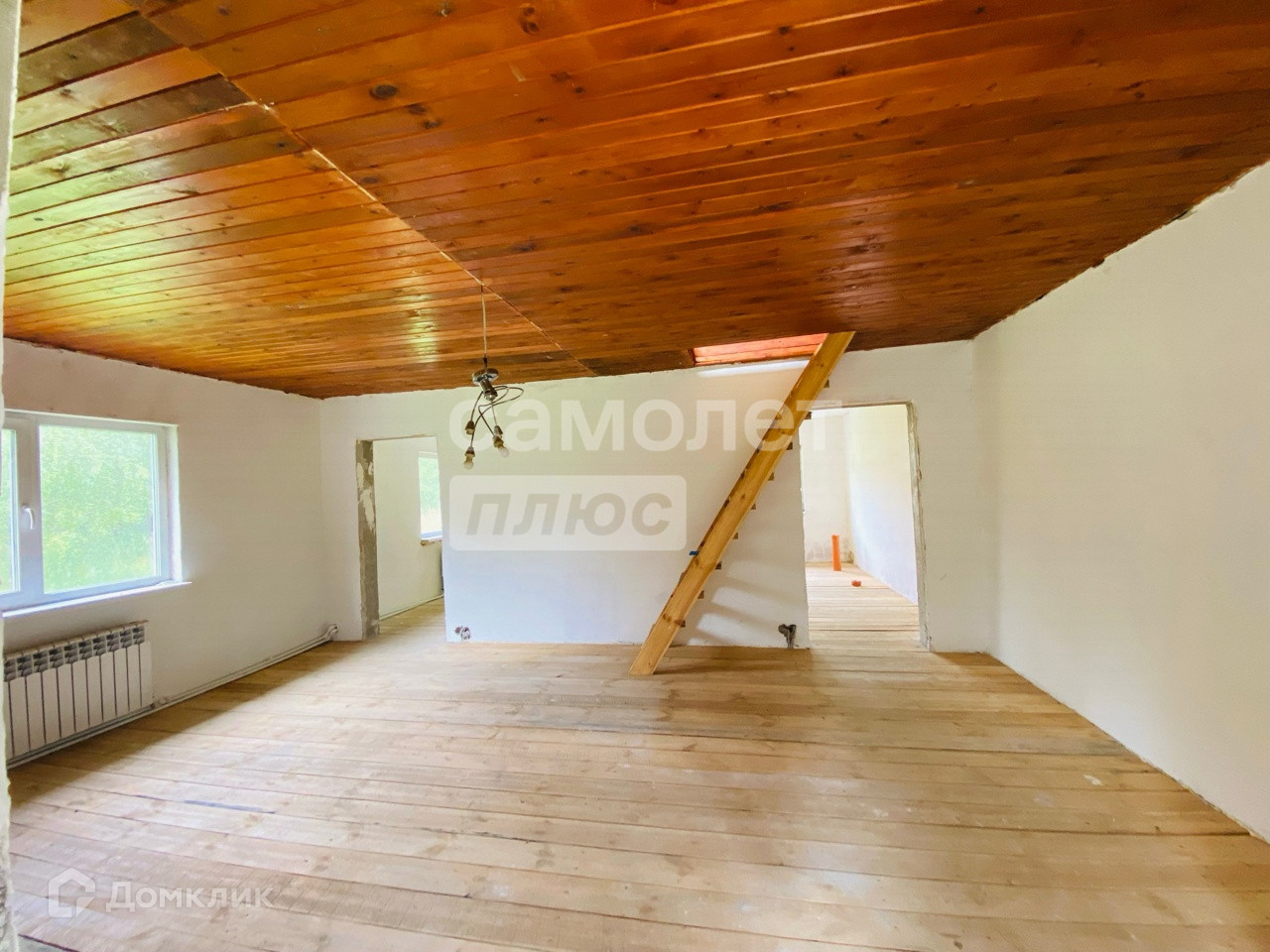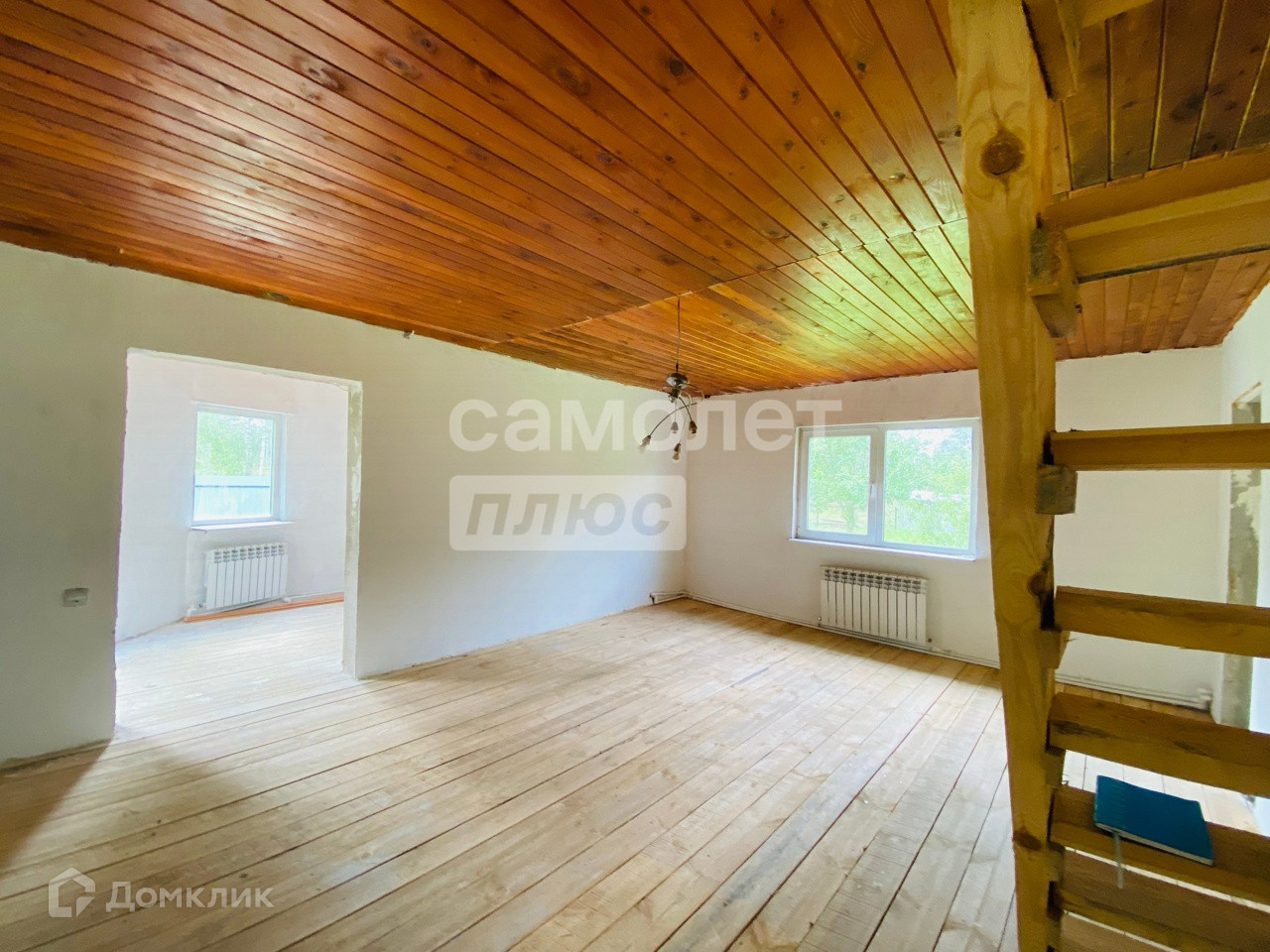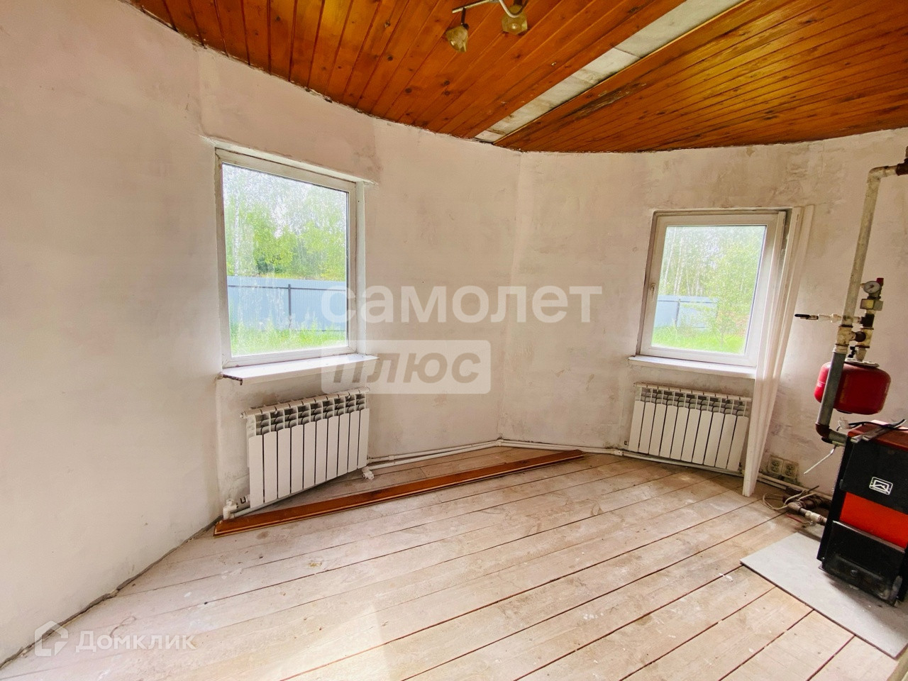 В доме на первом этаже пластиковые окна. На втором деревянные.