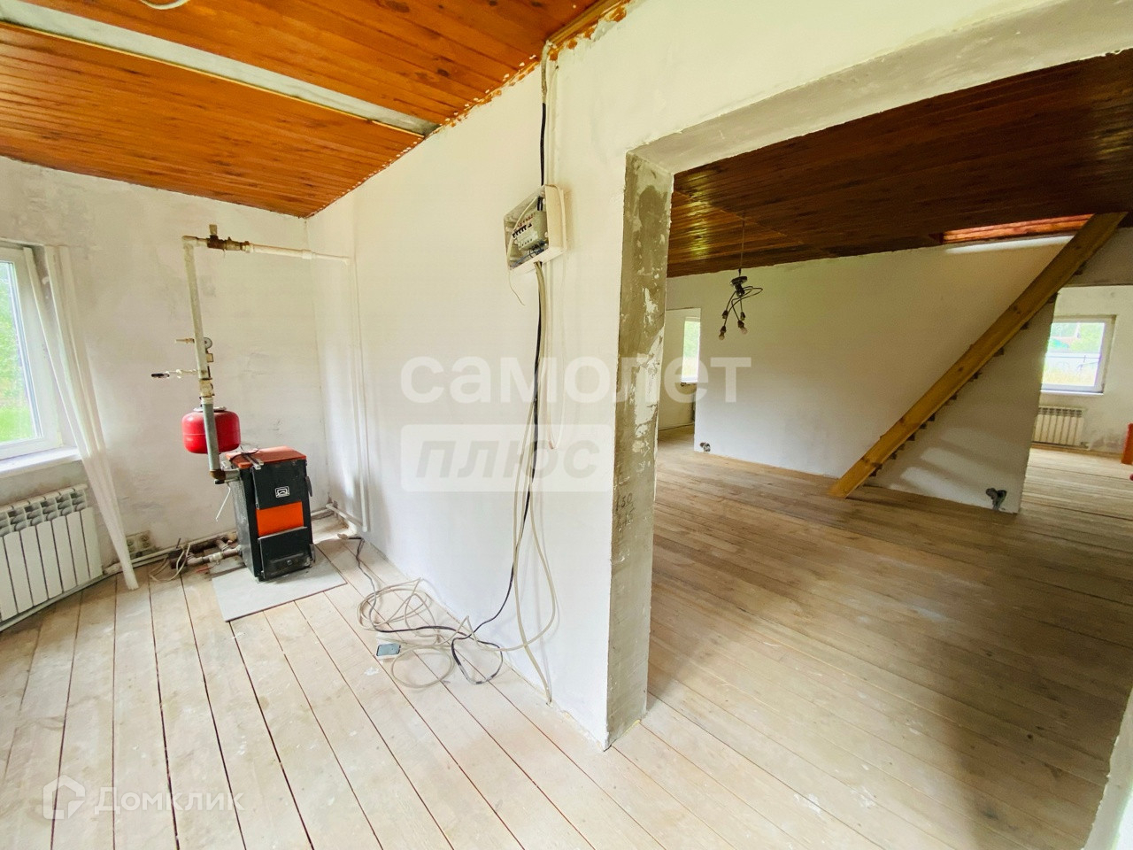 Отопление – батареи разведены от твердотопливного котла по 1ому этажу.