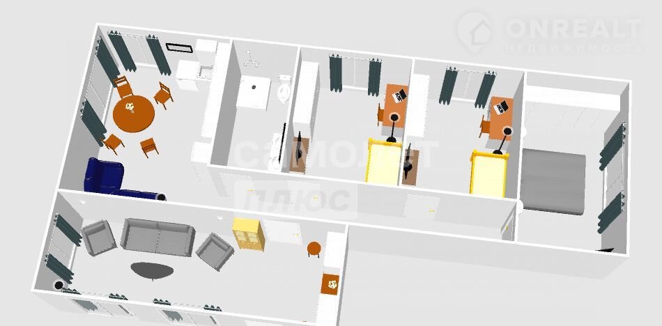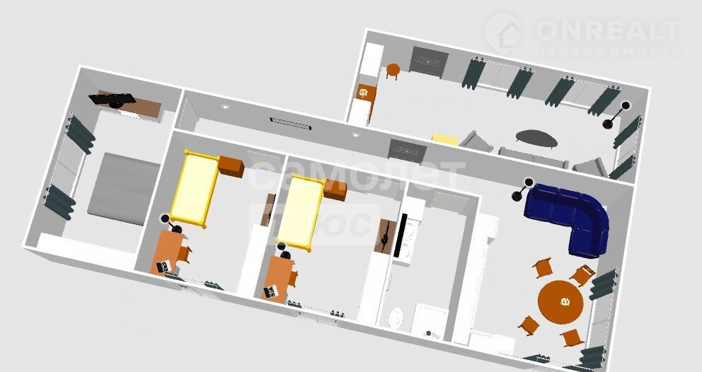 Три просторные комнаты, где легко разместится семья или найдется место для кабинета и гостей.