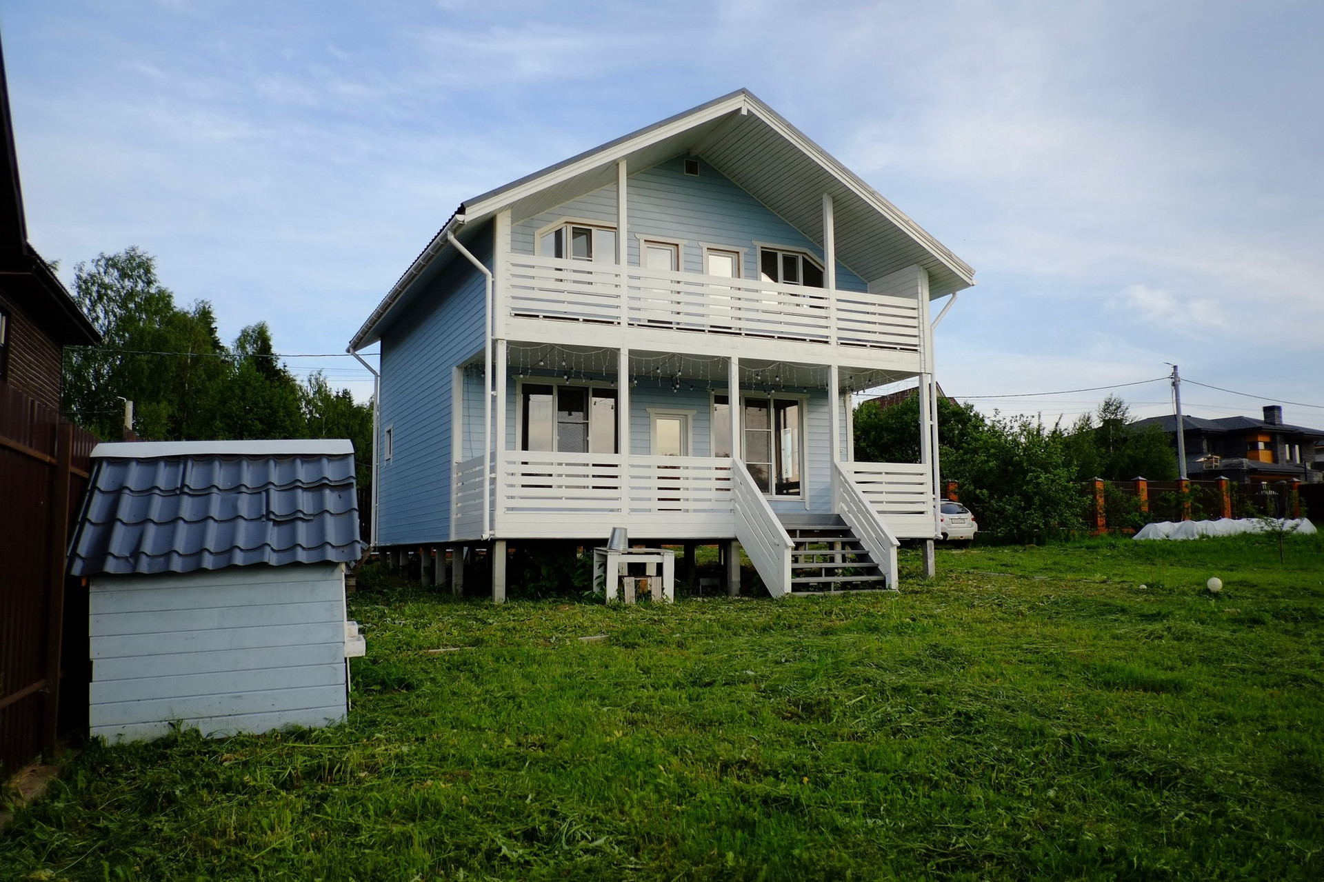 Дом каркасный из очень хороших материалов для круглогодичного (проживания). В доме есть всё для комфортной жизни: два туалета, душ, 5 комнат ( 3 спальни наверху, 1 внизу и кухня-гостиная), двухконтурный котел, благодаря которому удобно регулировать температуру воды и воздуха в доме, скважина глубже 55 метров, отличные фильтры на воду(от всех видов загрязнений), герметичный, экологичичный перерабатывающий септик ( вода из которого подходит для полива), дом покрашен по всем нормам и стандартам, всё продумывалось под себя.