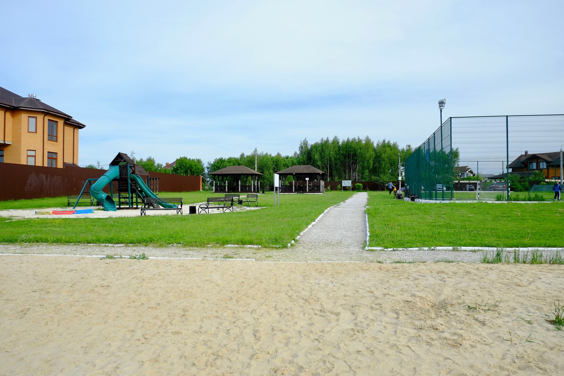 На территории есть свой магазин и пекарня, отличная пляжная зона с барбекю, беседками, детскими и 1 спортплощадками, чистым песочком и песчаным входом в озеро