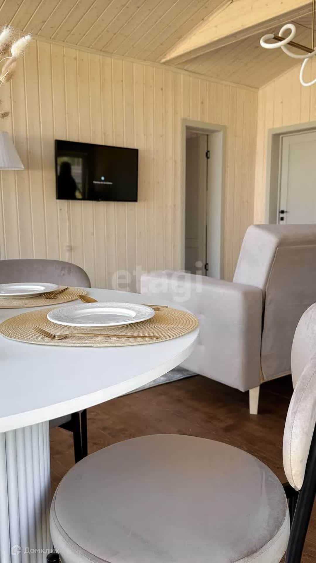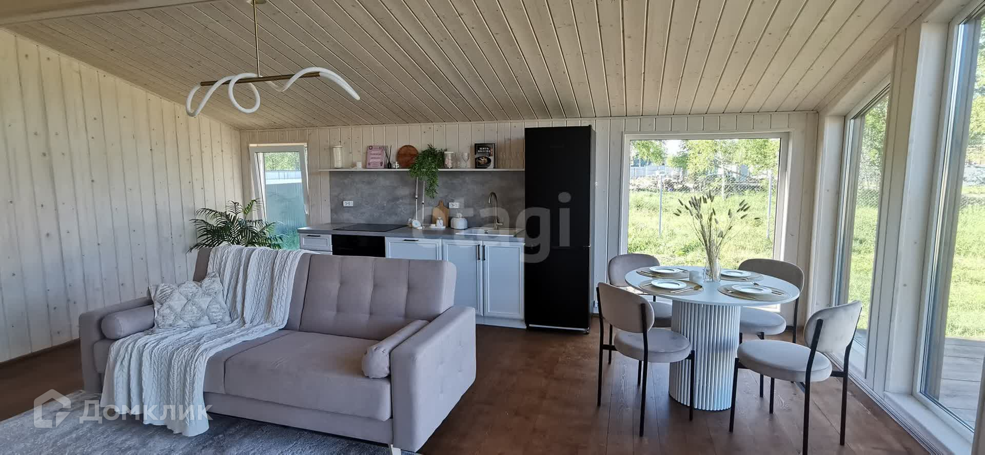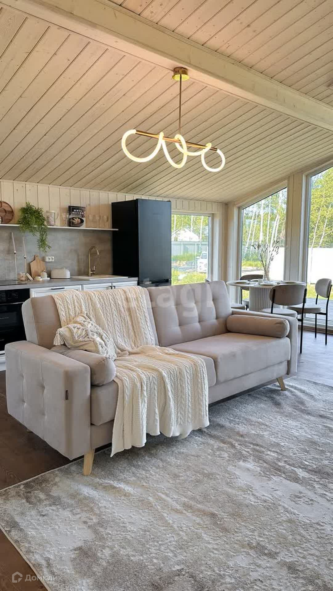 В доме 3 изолированные спальни и большая уютная кухня-гостиная со всей бытовой техникой (посудомоечная машина, холодильник, варочная панель, духовка, телевизор). Шикарная инстаграмная ванная комната. Терраса, на которой можно устраивать семейные завтраки, обеды и ужины, загорать и отдыхать с друзьями. Фасад красиво подсвечивается декоративными лампочками.