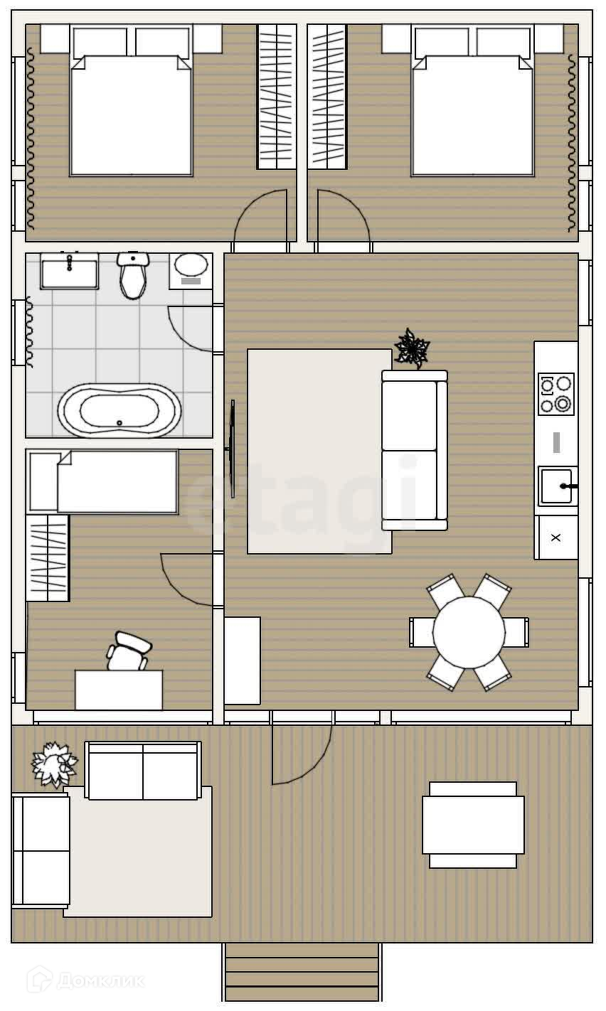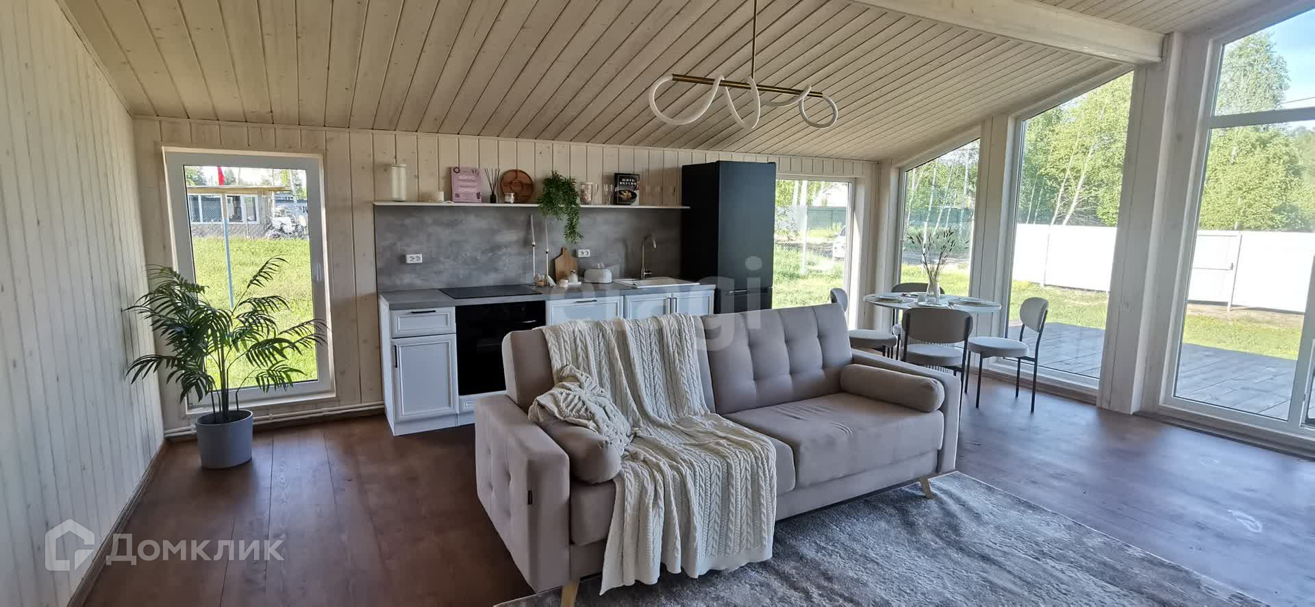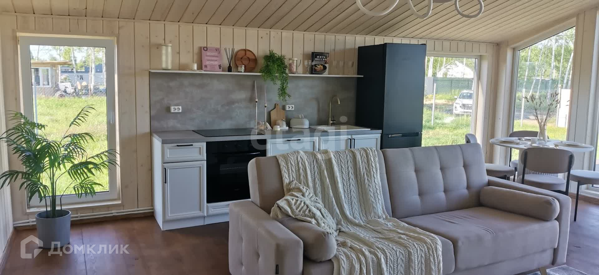 В доме 3 изолированные спальни и большая уютная кухня-гостиная со всей бытовой техникой (посудомоечная машина, холодильник, варочная панель, духовка, телевизор). Шикарная инстаграмная ванная комната. Терраса, на которой можно устраивать семейные завтраки, обеды и ужины, загорать и отдыхать с друзьями. Фасад красиво подсвечивается декоративными лампочками.