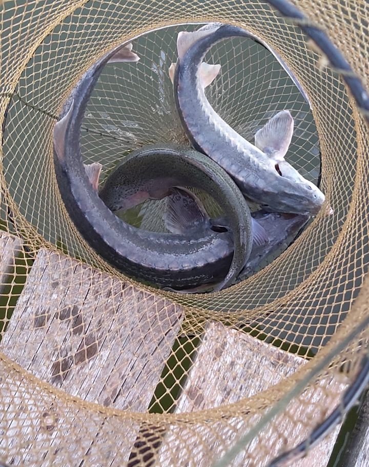 В деревне пруд, зарыбленный карпом, сомом, амуром и толстолобиком.