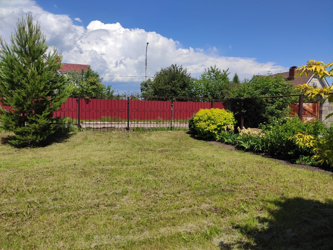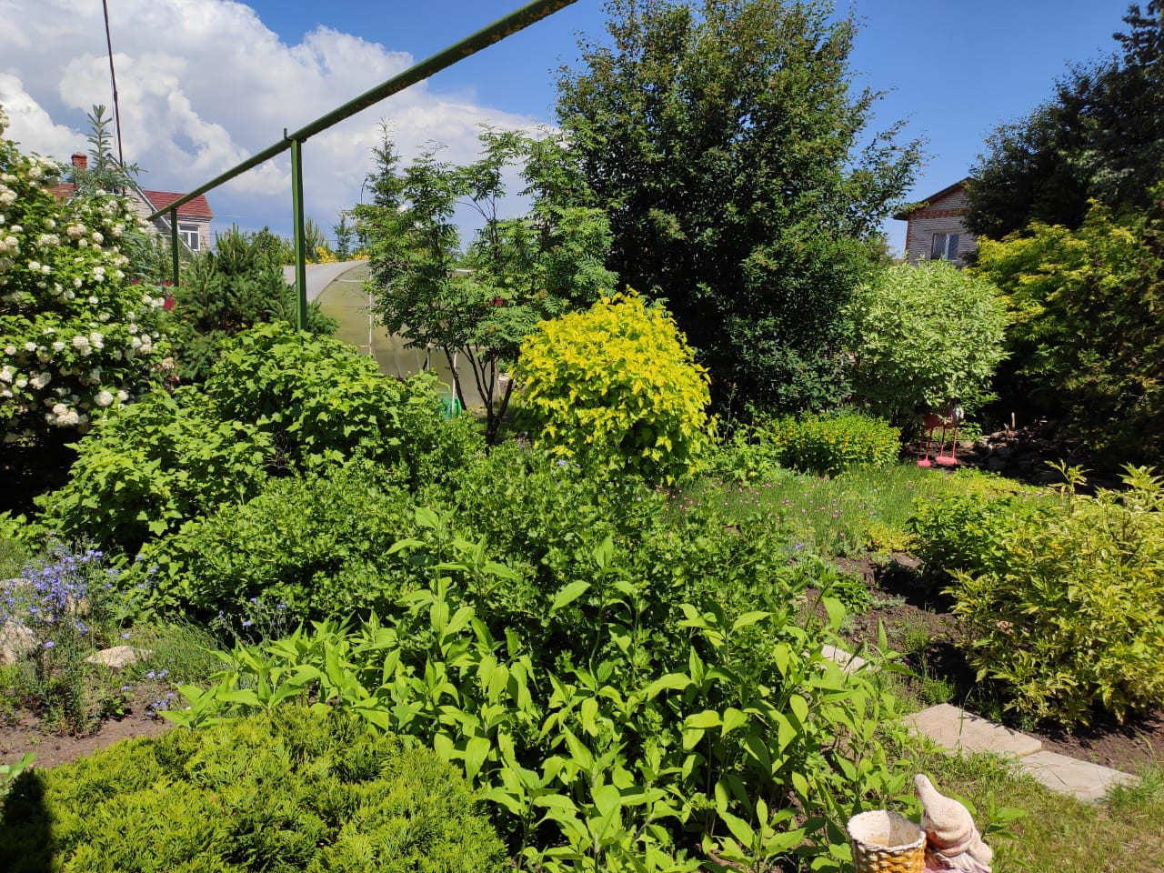 Очень красивый, ухоженный приусадебный участок с многолетними насаждениями, теплицей огородом и клумбами. На участке построены баня, хоз. блок, гараж
