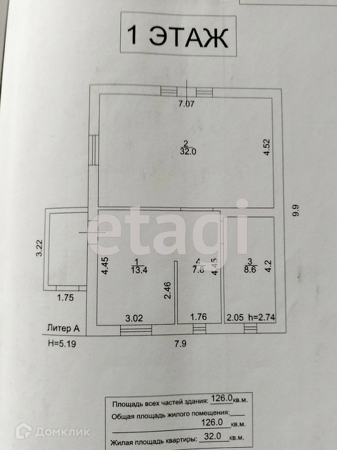 Общая площадь 126 м2