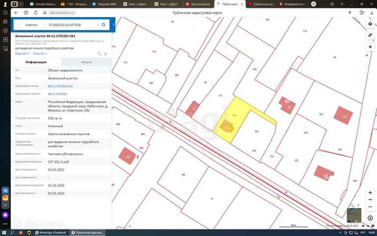 Площадь участка 5.2 сот.
