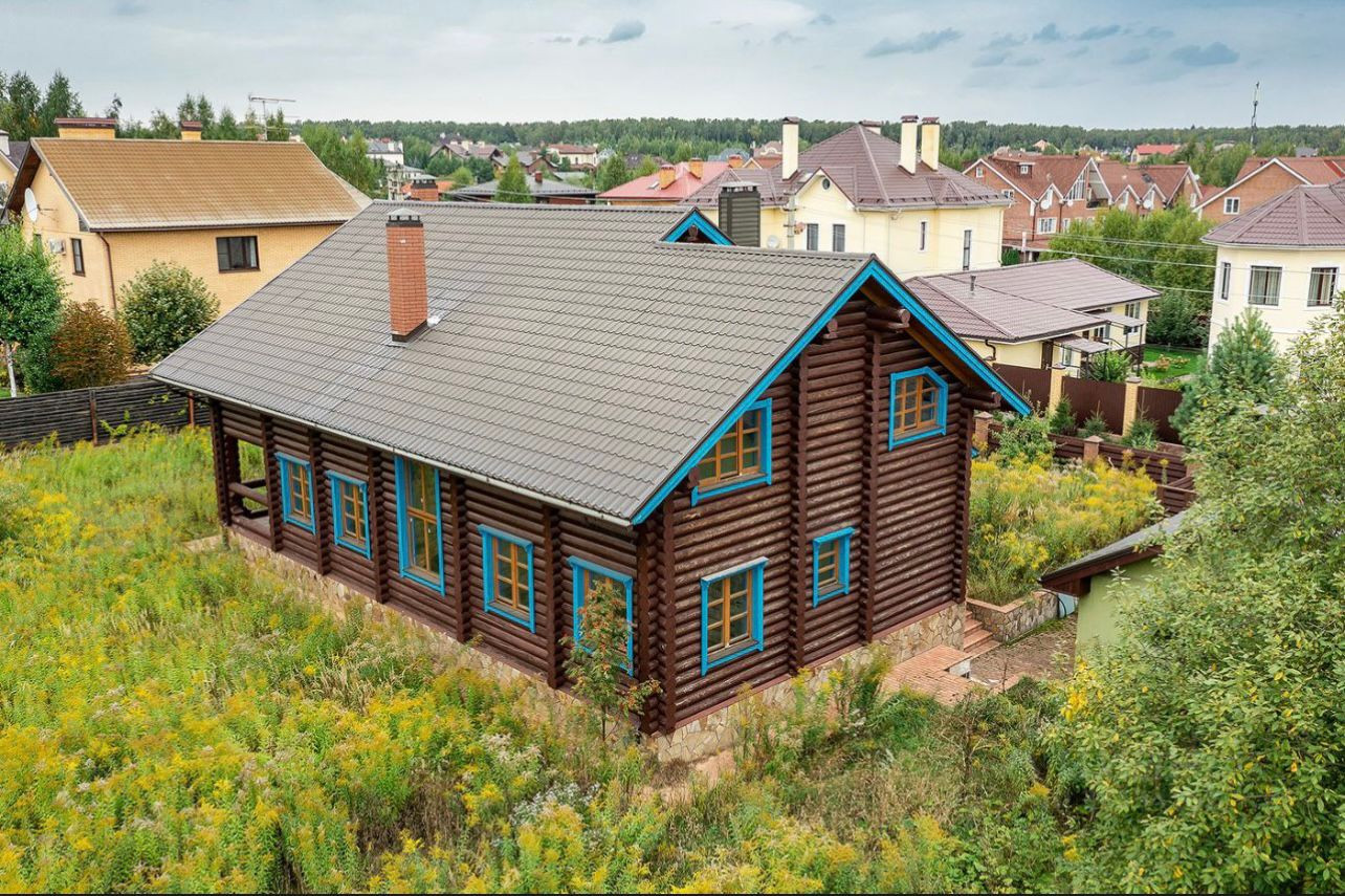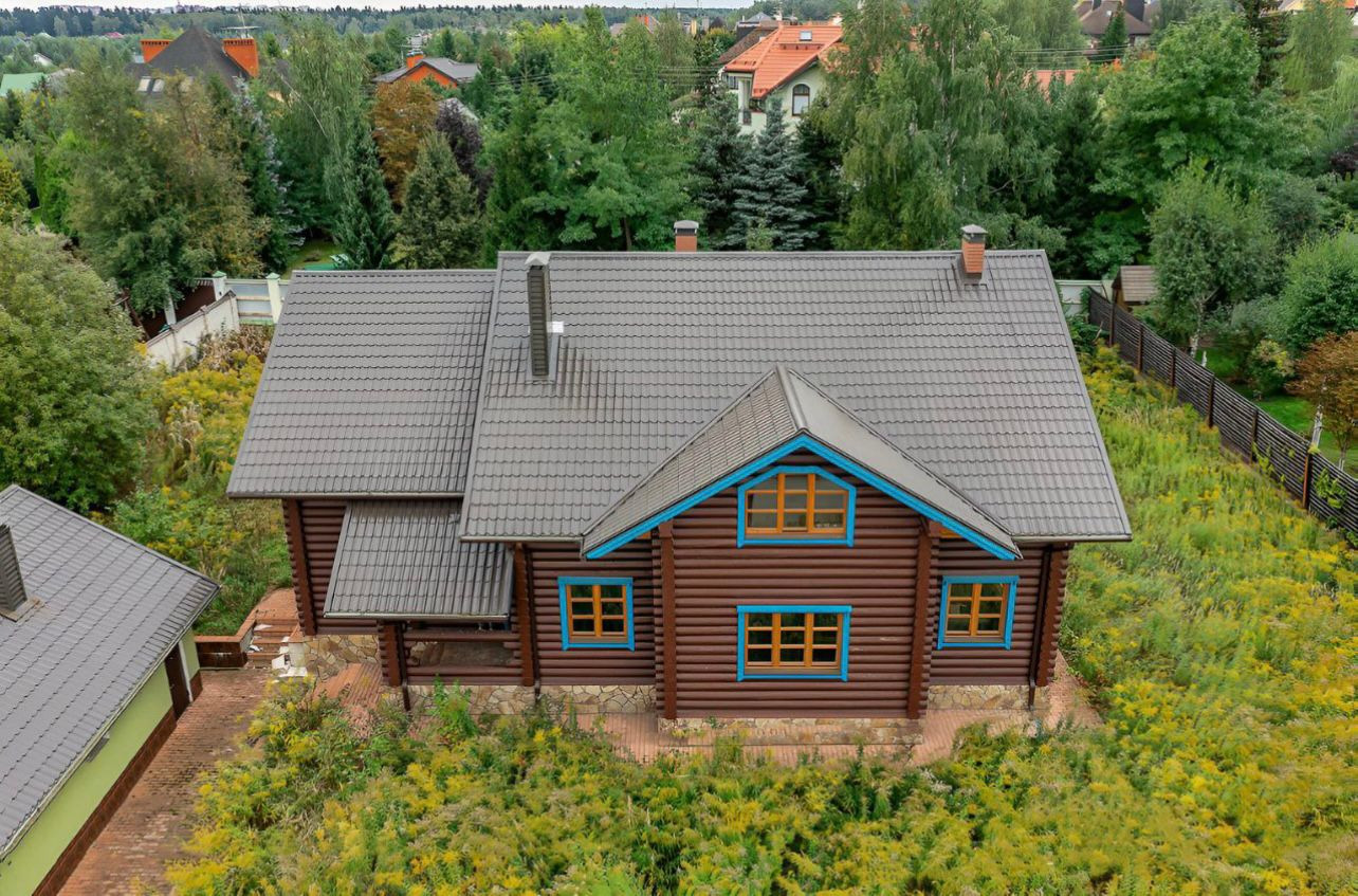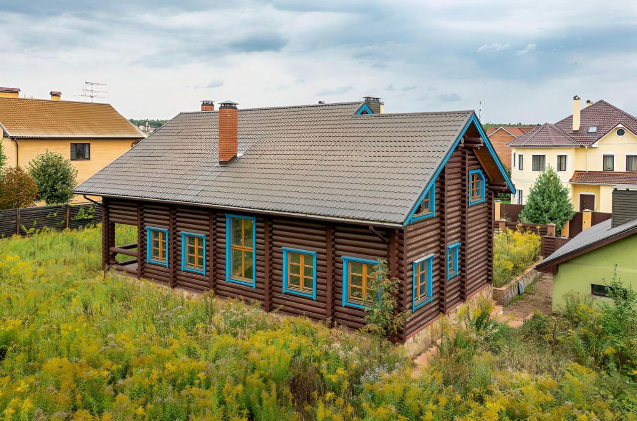 Дом с отделкой 286 м2 в охраняемом коттеджном поселке. Материал стен  бревно фундамент ленточный, крыша мягкая кровля. гараж на две машины. Общественный транспорт в шаговой доступности. Земельный участок и жилой дом оформлены. Прописка Москва.