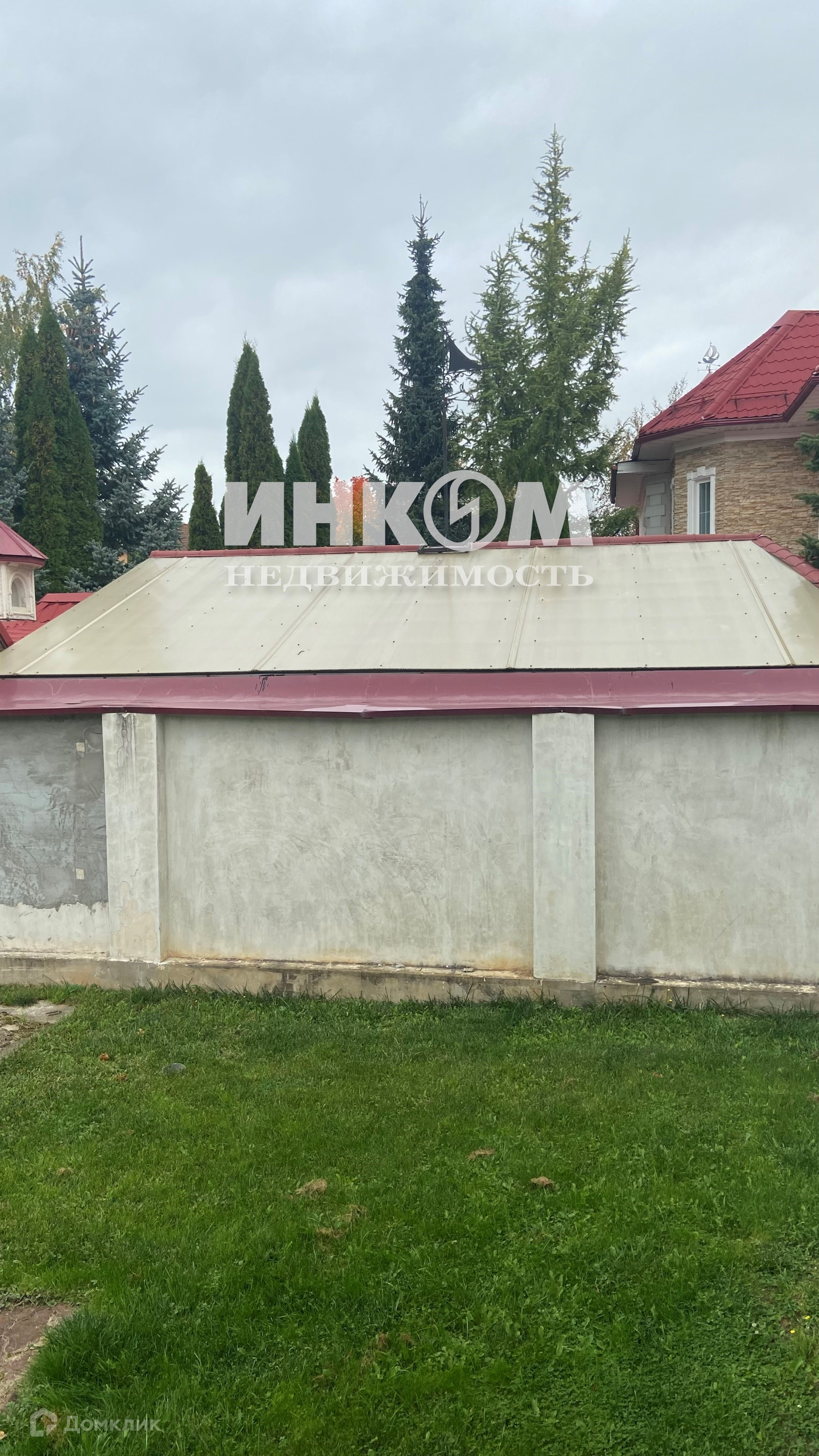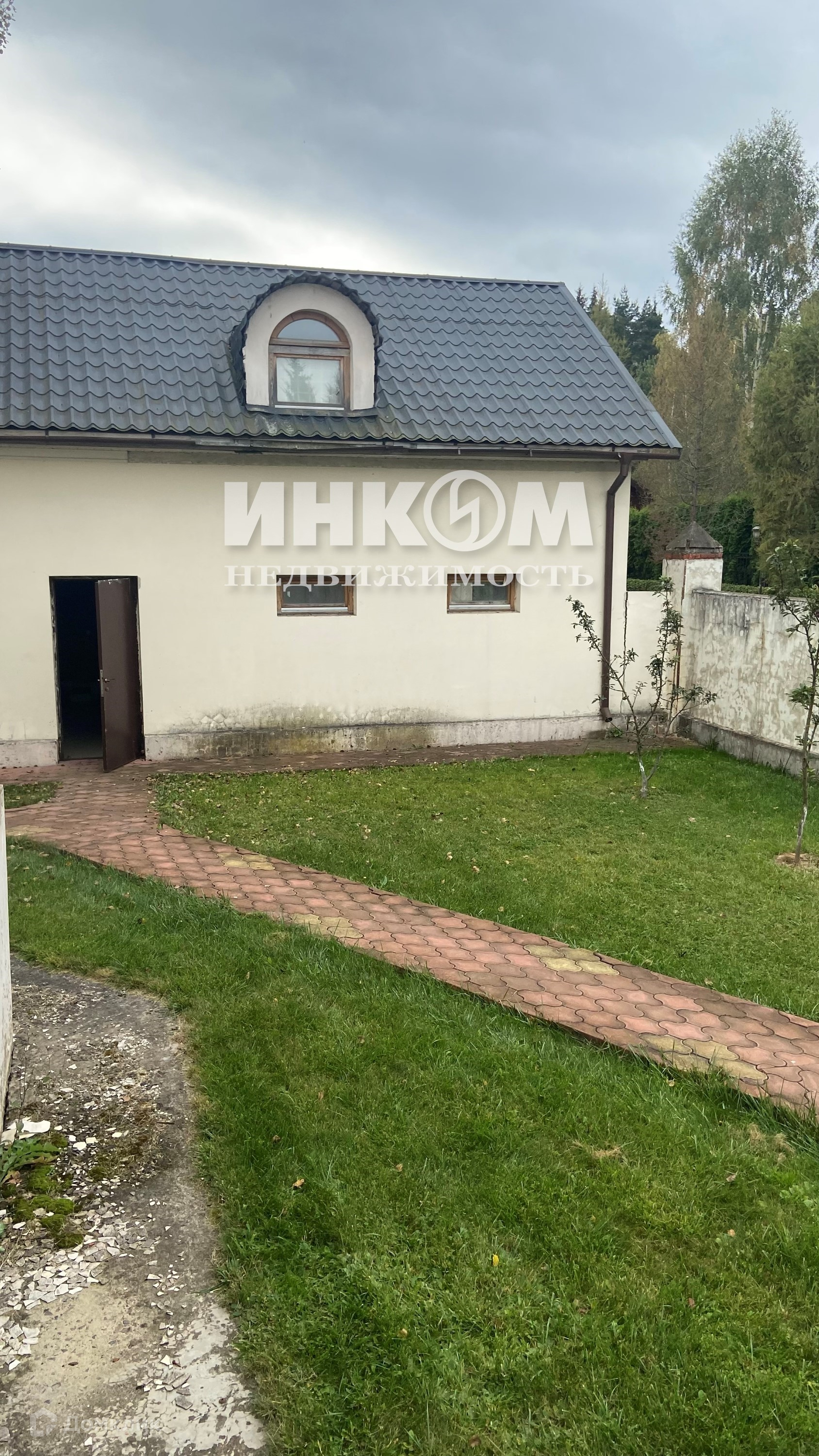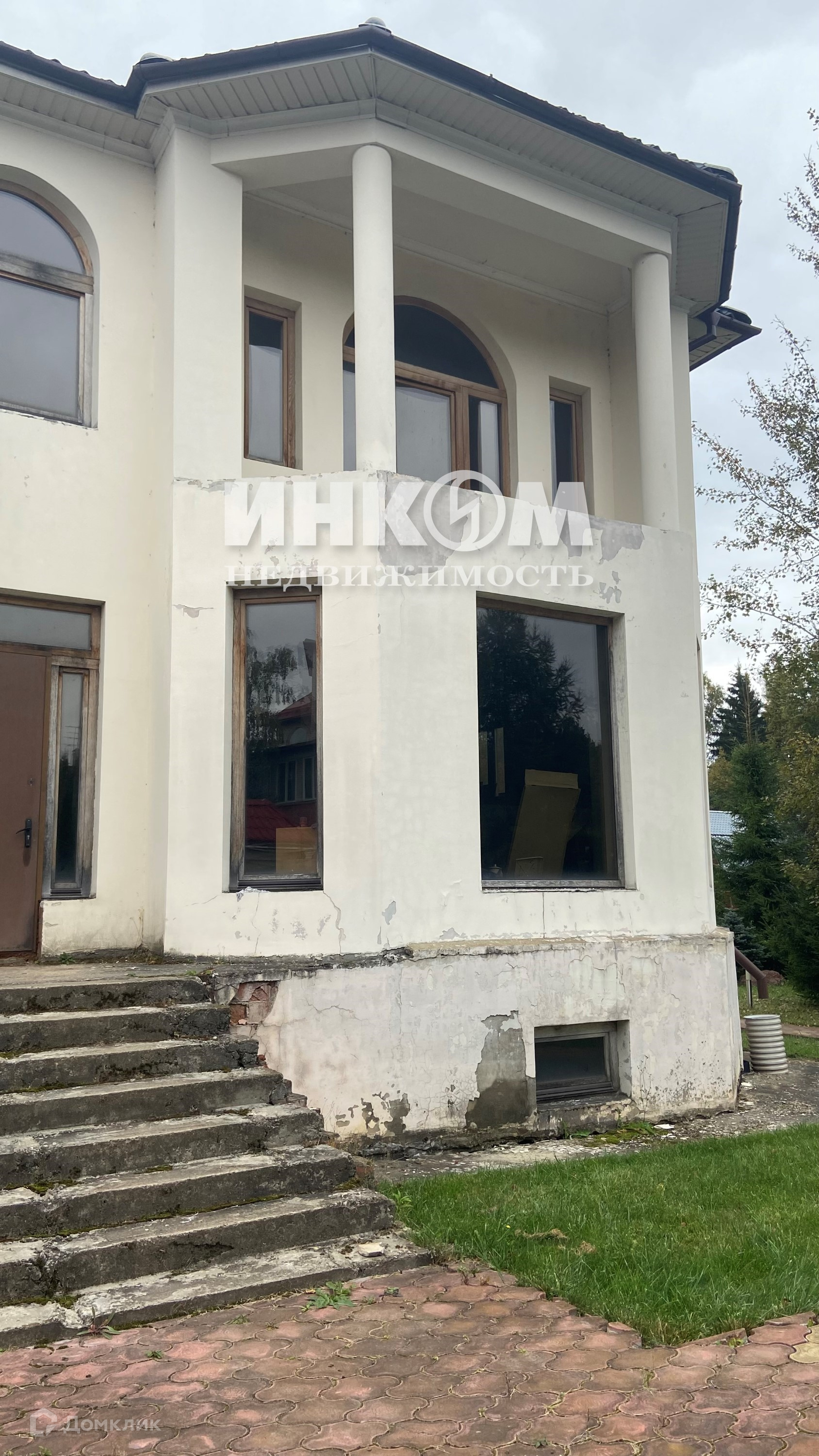 Основной дом под отделку, стены - кирпич, облицовка стен штукатурка, цоколь-дикий камень. Стены оштукатурены, на полу бетонная стяжка, лестница ж/б, установлен газовый котел Protherm, подведено в котельную электроэнергия, вода, канализация. Отдельностоящий гараж на две машины  едином стиле с домом .
