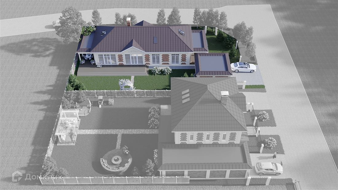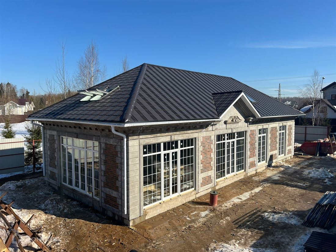 Одноэтажный монoлитный дом с мансардой площадью 240 м2.