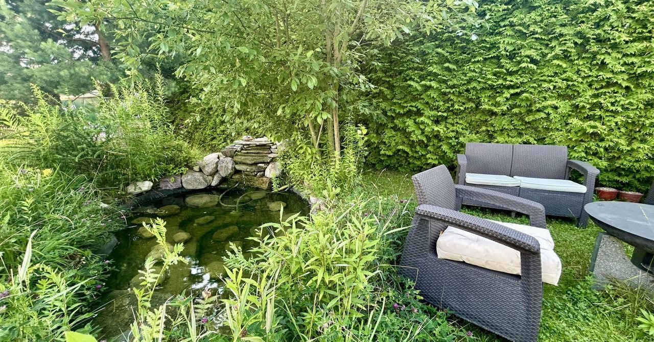 Благоустроенный участок 16,5 соток, расположен на тупиковой улице. Высажен газон, фруктовые деревья, декоративные кустарники, дорожки и парковка вымощены брусчаткой. На участке беседка, зона патио с барбекю. В пешей доступности озеро с детской площадкой и зоной отдыха.