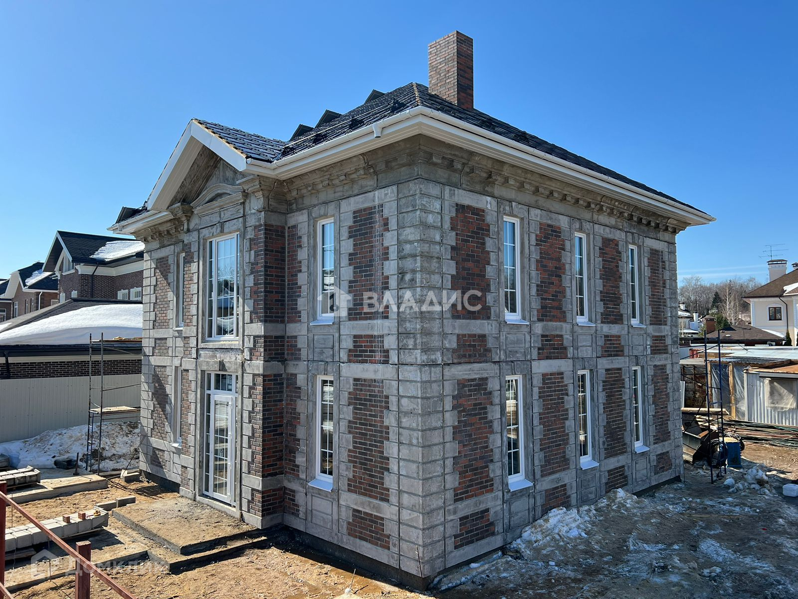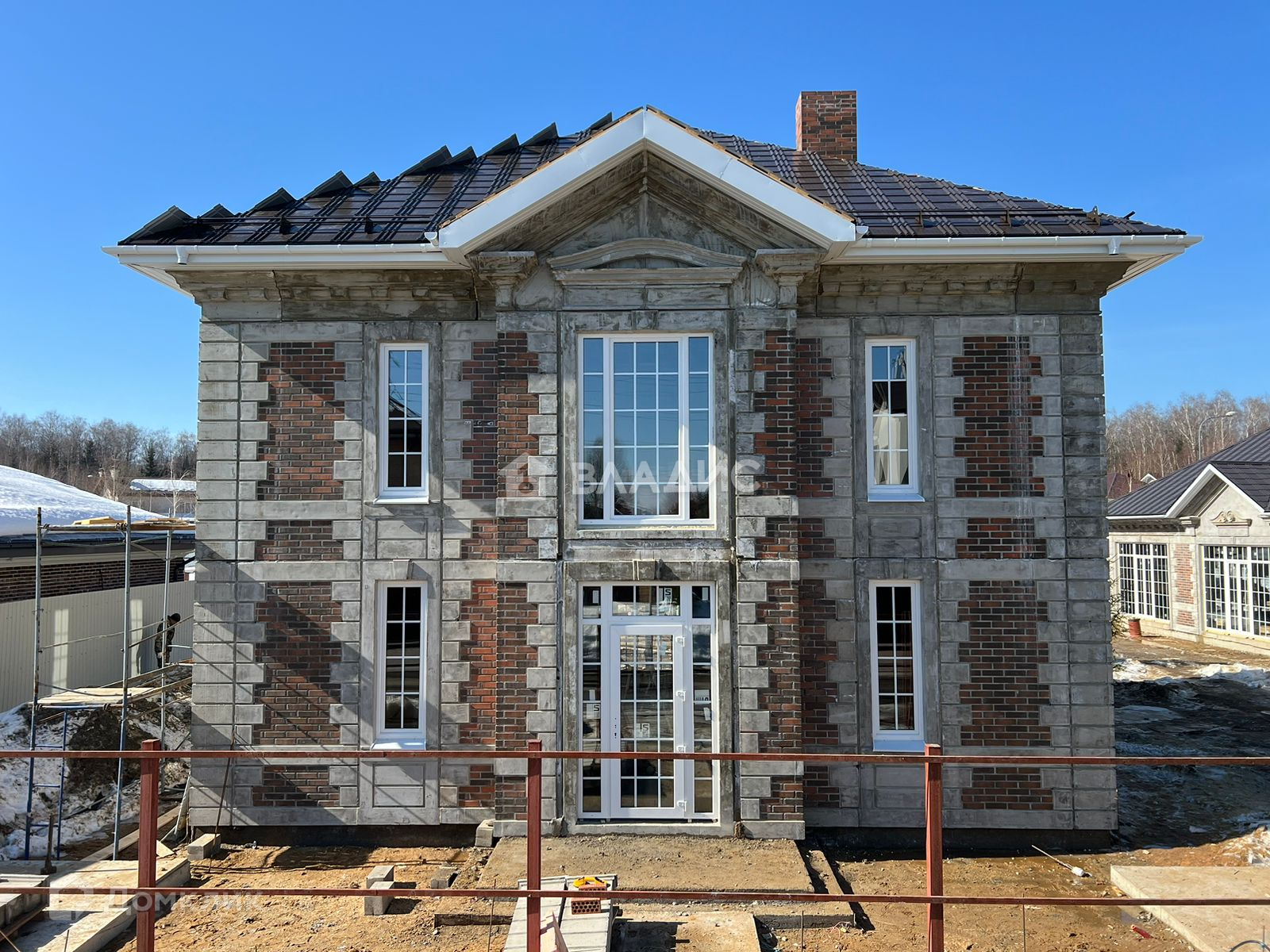Наружная отделка - клинкерный кирпич с декоративными архитектурными элементами из фибробетона