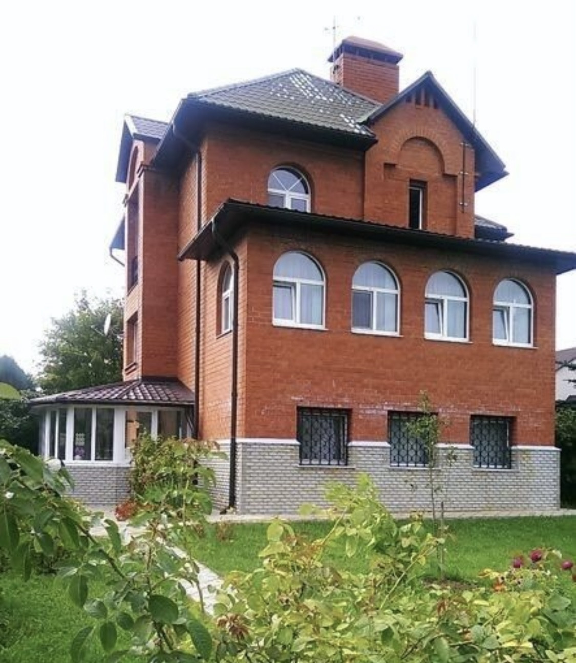 Удобная функциональная планировка: 1-й эт. - застекленная веранда, прихожая, кладовка (полу-погреб), 2 комнаты с теплыми полами, сауна, с/у с душевой кабиной; 2-й эт. - гостиная с камином и эркером, кухня с выходом на отапливаемую веранду-столовую, с/у, гардеробная; 3-й эт. - 3 спальни (две с балконами), с/у с ванной.