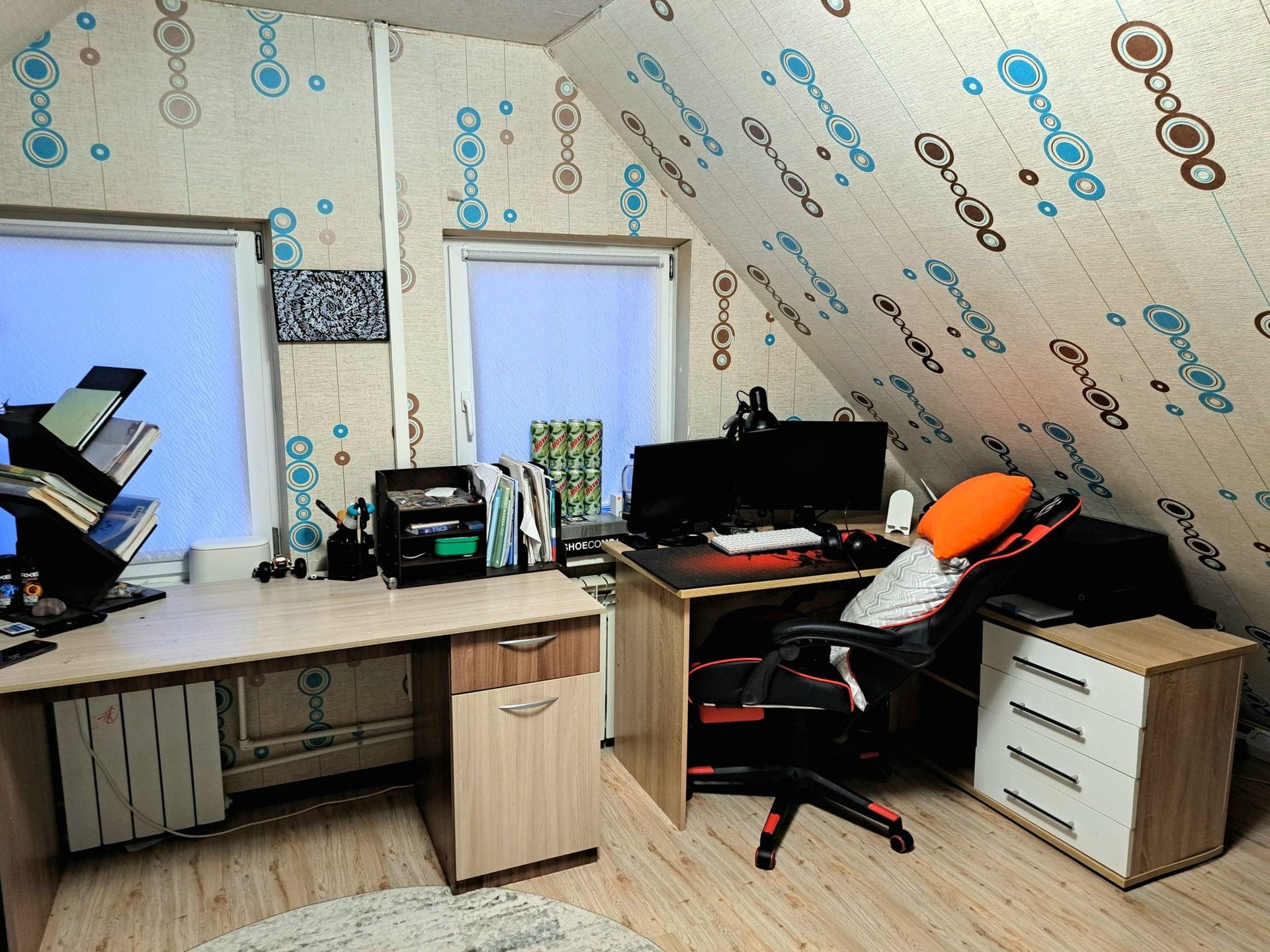 На втором этаже две спальни.