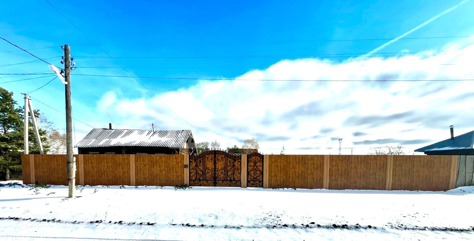 Дом огорожен красивым забором, с кованными, оригинальными узорами. Земля на участке плодородная, на участке посажены ёлки разных видов, на газоне летом растут разные цветы, есть розы, кустарники, крыжовник. На участке имеется второй дом, который можно по желанию использовать, как гостевой, он отапливается и теплый, а в хороших руках может стать внешне более интересным.