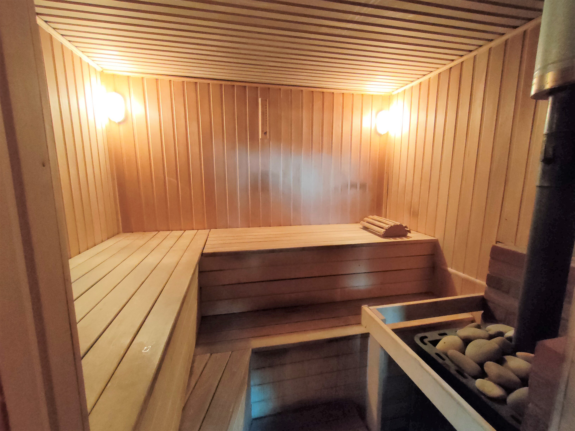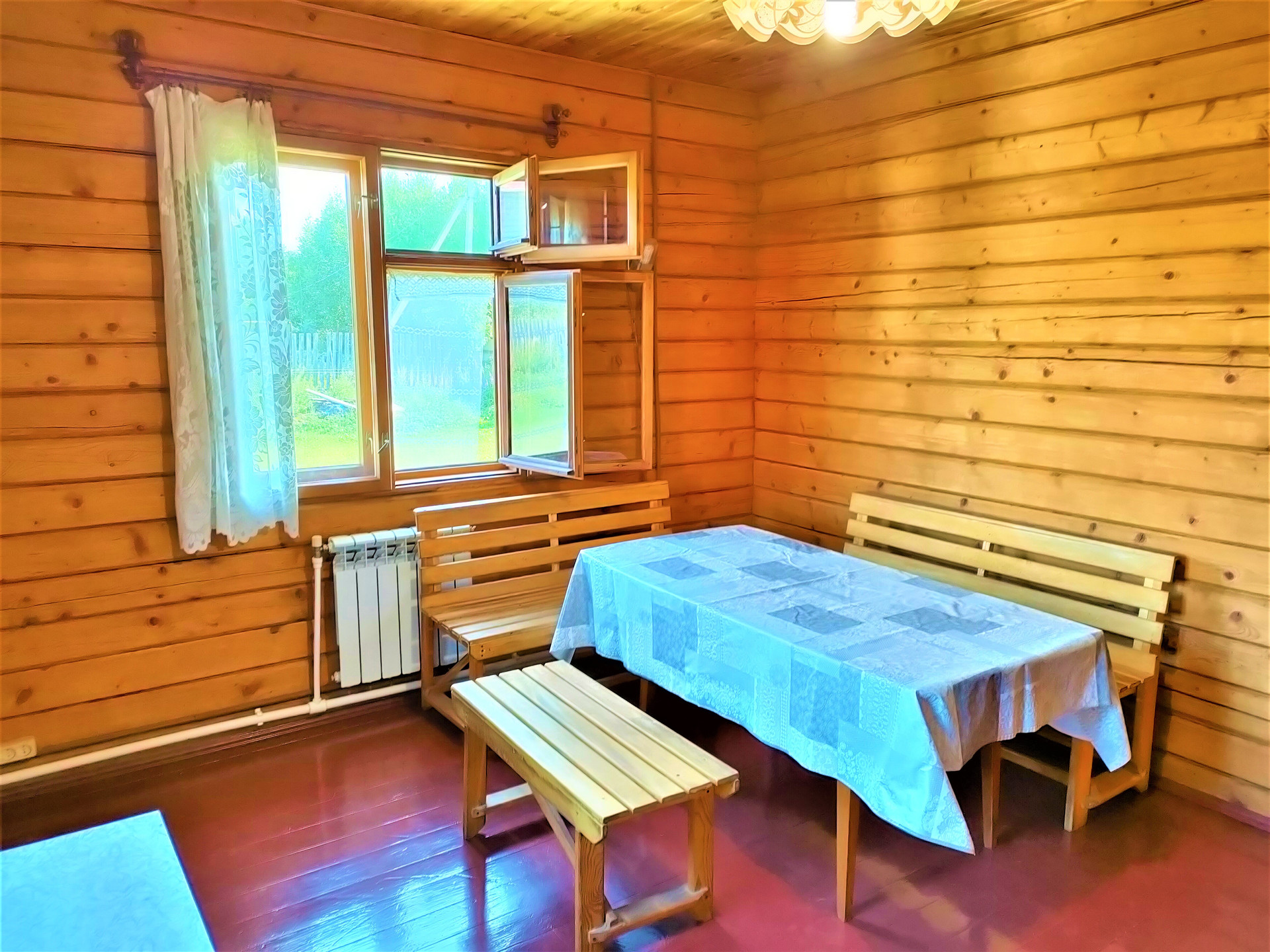 На участке отличная отдельно стоящая Баня  (размер 4,5м*9м) с отоплением батареями от газового котла дома через теплотрассу с душем с горячей водой.