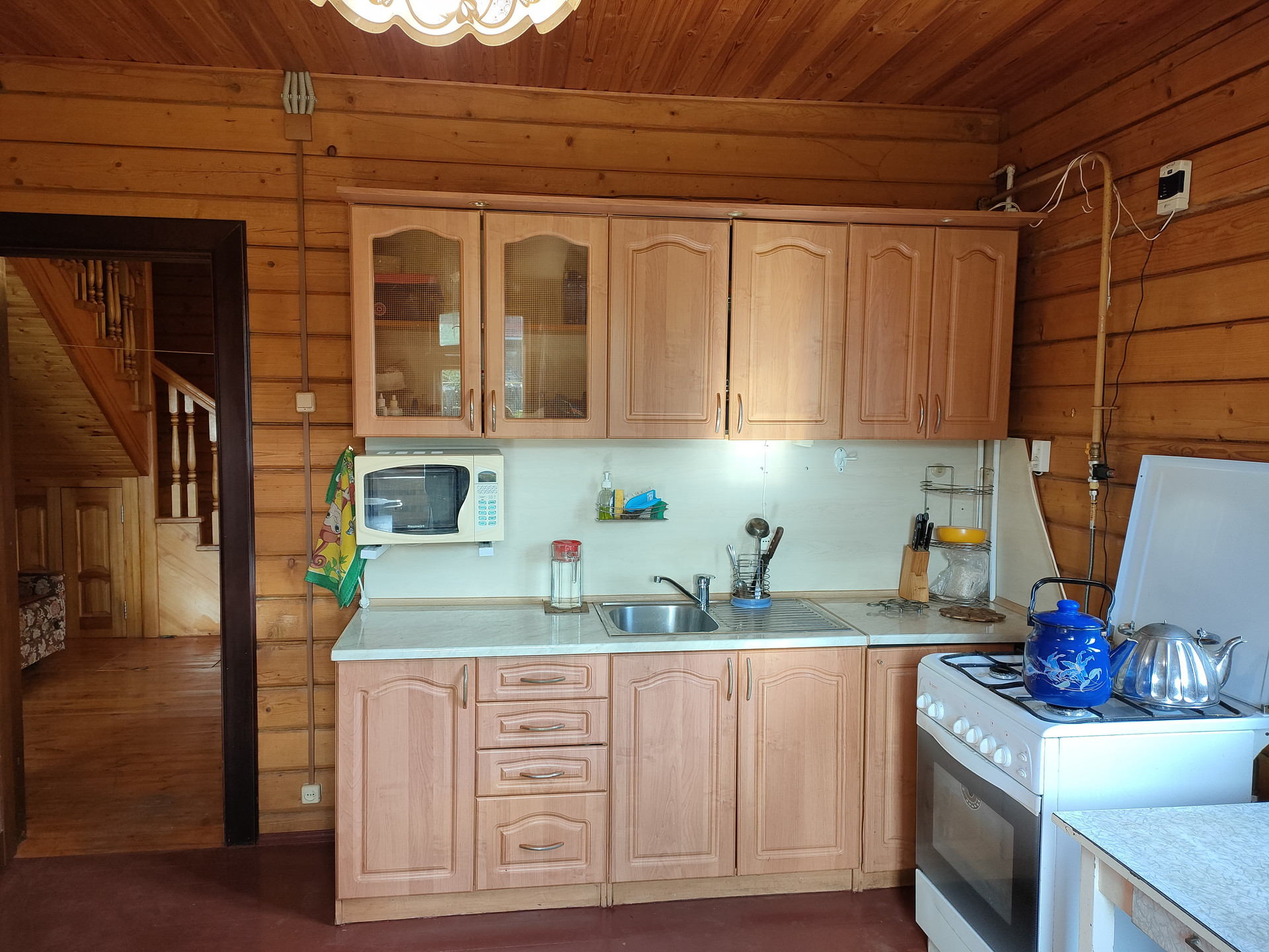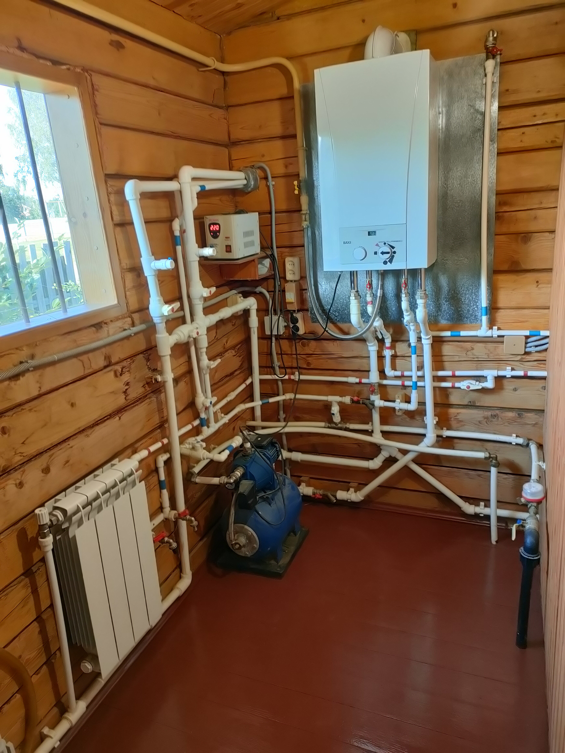 К дому подведено электричество (3 фазы), газовое отопление (новый двухконтурный котел BAXI), центральный водопровод, также на участке есть два колодца подведенные к дому с насосами (резерв, полив).