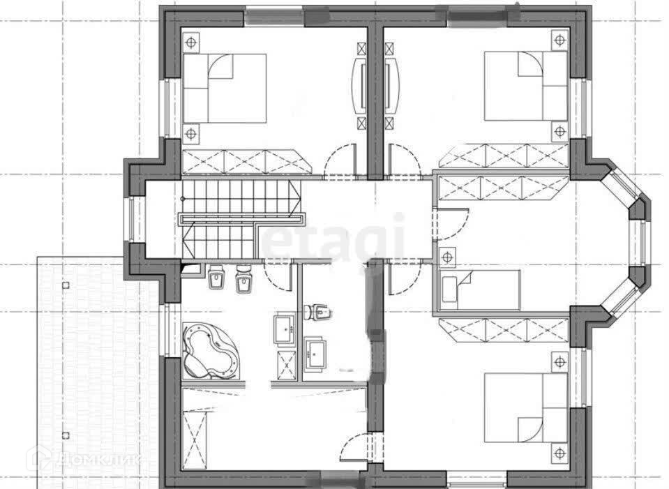 На втором этаже 4 спальни, два санузла, гардеробная комната.