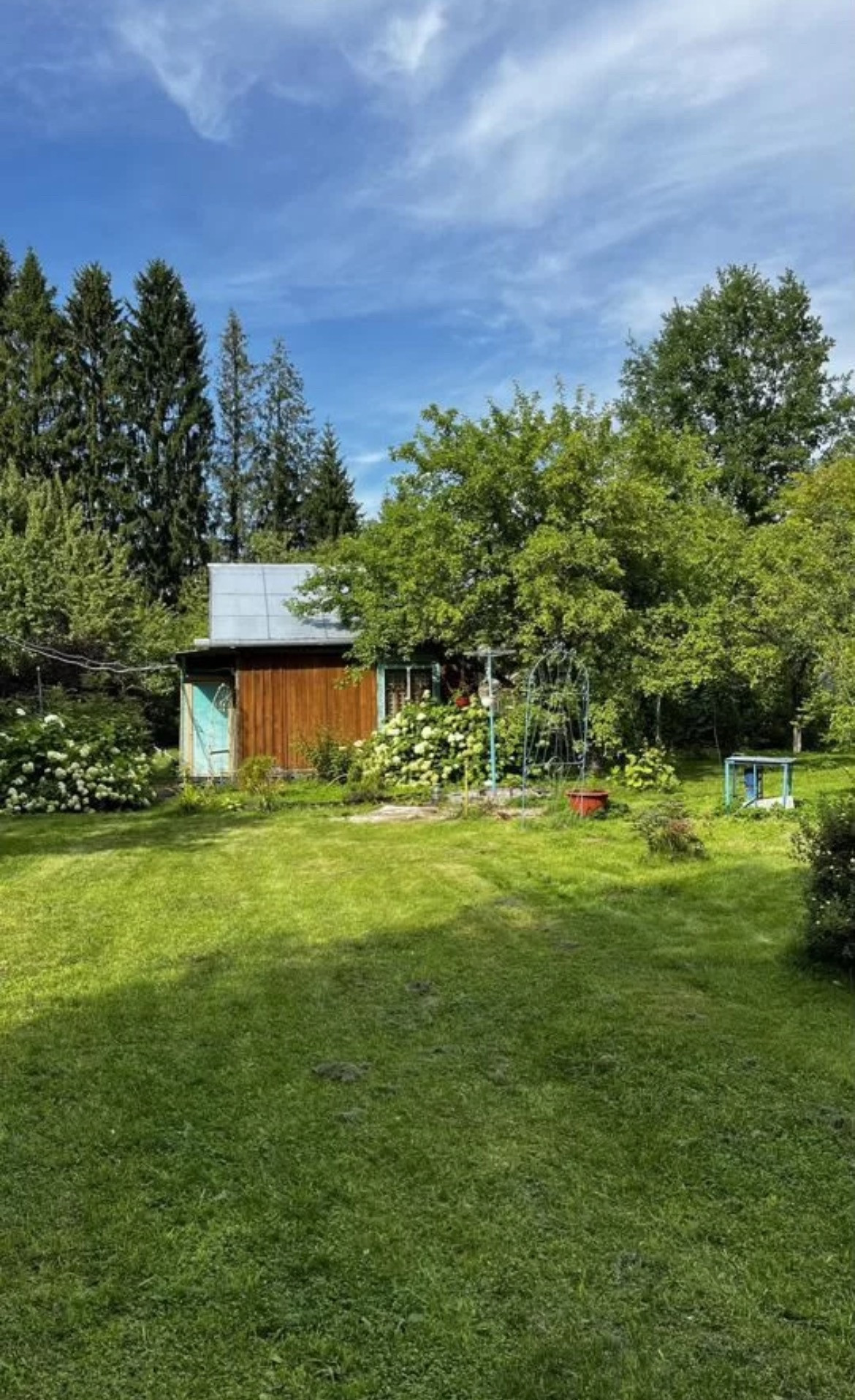 Продается огороженный капитальным металлическим забором земельный участок и дом сборно-щитовой (обработан пропиткой), кухня и две комнаты, в обоих есть спальные места, шкаф, холодильник, ТВ, печка в одной комнате, топится дровами. Плитка электрическая с духовкой на две конфорки, раковина в кухне, слив сделан., Участок находится в живописном районе СОТ Гарусово, в 14 км от центра города, озеро в 50 метрах, соседствует с одним владением (пустует), с задней стороны участка, въезд индивидуальный, отдельный, недалеко от центрального шоссе. Территория ухоженная, имеются две капитальные теплицы, баня, не сруб, сделана из утепленного вагончика, печка нержавейка, топится дровами, так же имеется хозяйственная будка для инвентаря. Сделана площадка под автомобиль, с помощью пласт-панелей и усиления грунта. Проведено ТВ Триколор. Газонокосилка и пила на аккумуляторах фирмы Greenworks GD40LM16XK4, 40V, бесщеточная, 41 см, c 2хАКБ 4Ач и ЗУИ, садовый инвентарь, насос со шлангами и многое друге полезное на даче. Имеются 6 яблонь, одна груша. Все плодоносят.